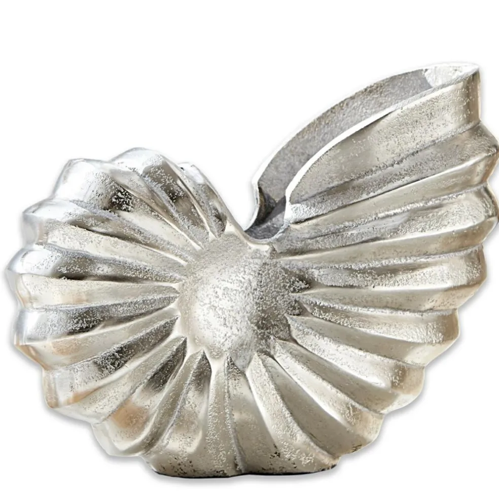 Un somptueux élément de déco en fonte d’aluminium prestigieuse à la finition brillante. Cette ammonite décorative est telle un trésor poli par la mer. Elle est réalisée dans une fonte d’aluminium à la finition urbaine. Une pure merveille qui ne nécessite aucun entretien : elle ne garde pas les traces de doigts ! Elle servira tantôt de petit vase tantôt de simple objet de déco : elle apporte une touche stylée et élégante dans la maison. Son style d’inspiration maritime évoque de belles journées en bord de mer ou d’incroyables vacances de luxe dans les Hamptons. Elle sera du plus bel effet accompagnée d’autres décorations marines. Toutefois, elle s’accordera en toute harmonie avec tous les autres styles d’intérieurs, shabby chic, modernes ou scandinaves. Sa brillance argentée et sa forme réaliste subliment tous les intérieurs !