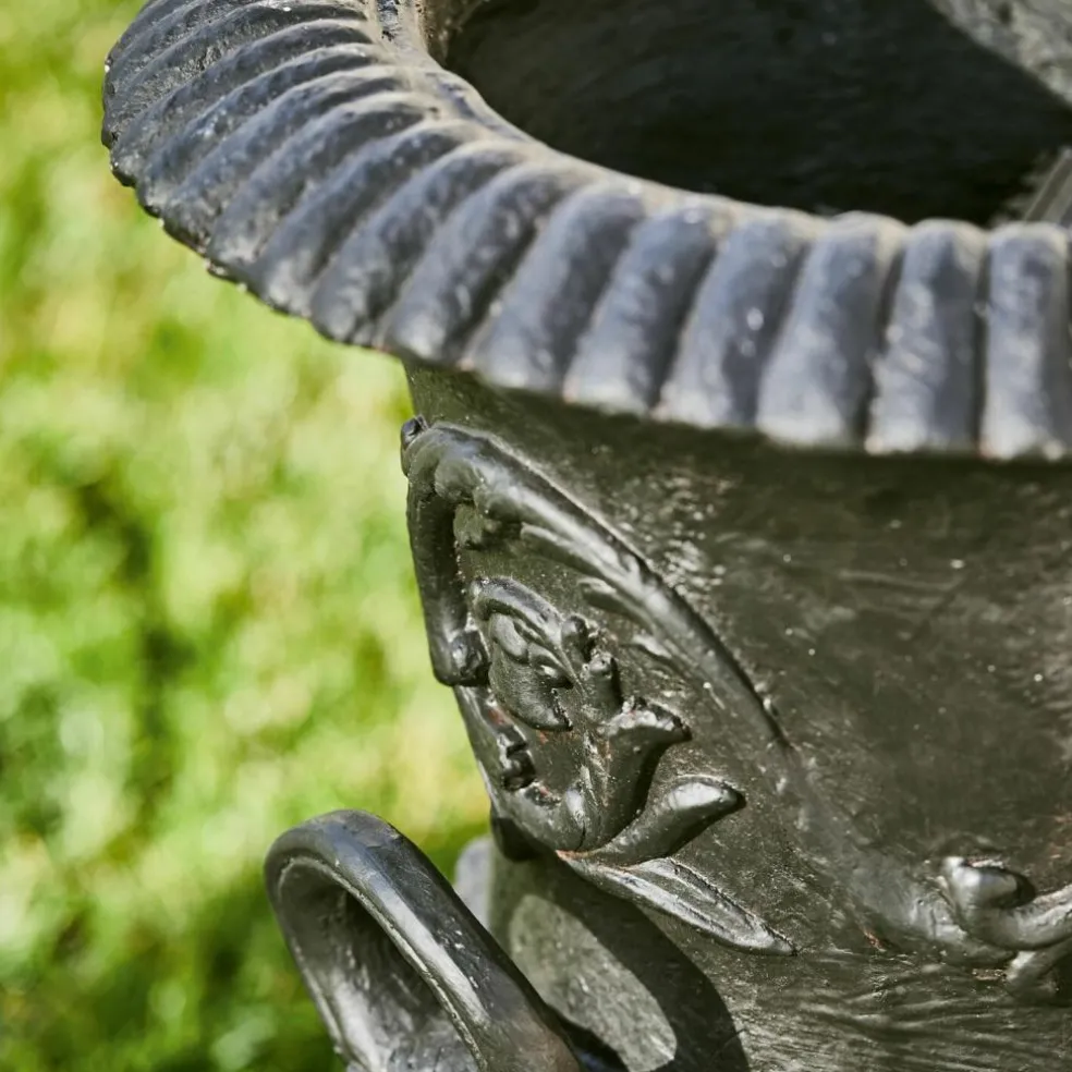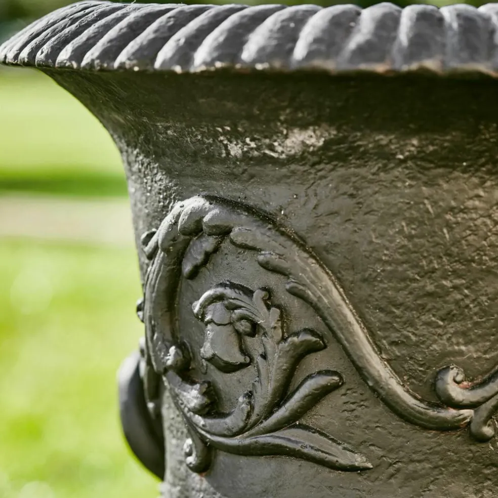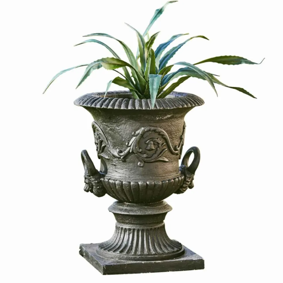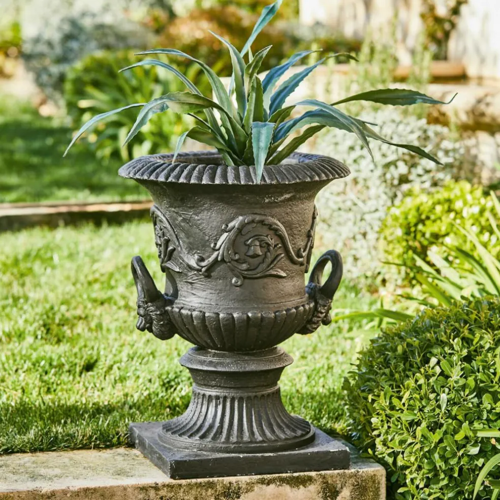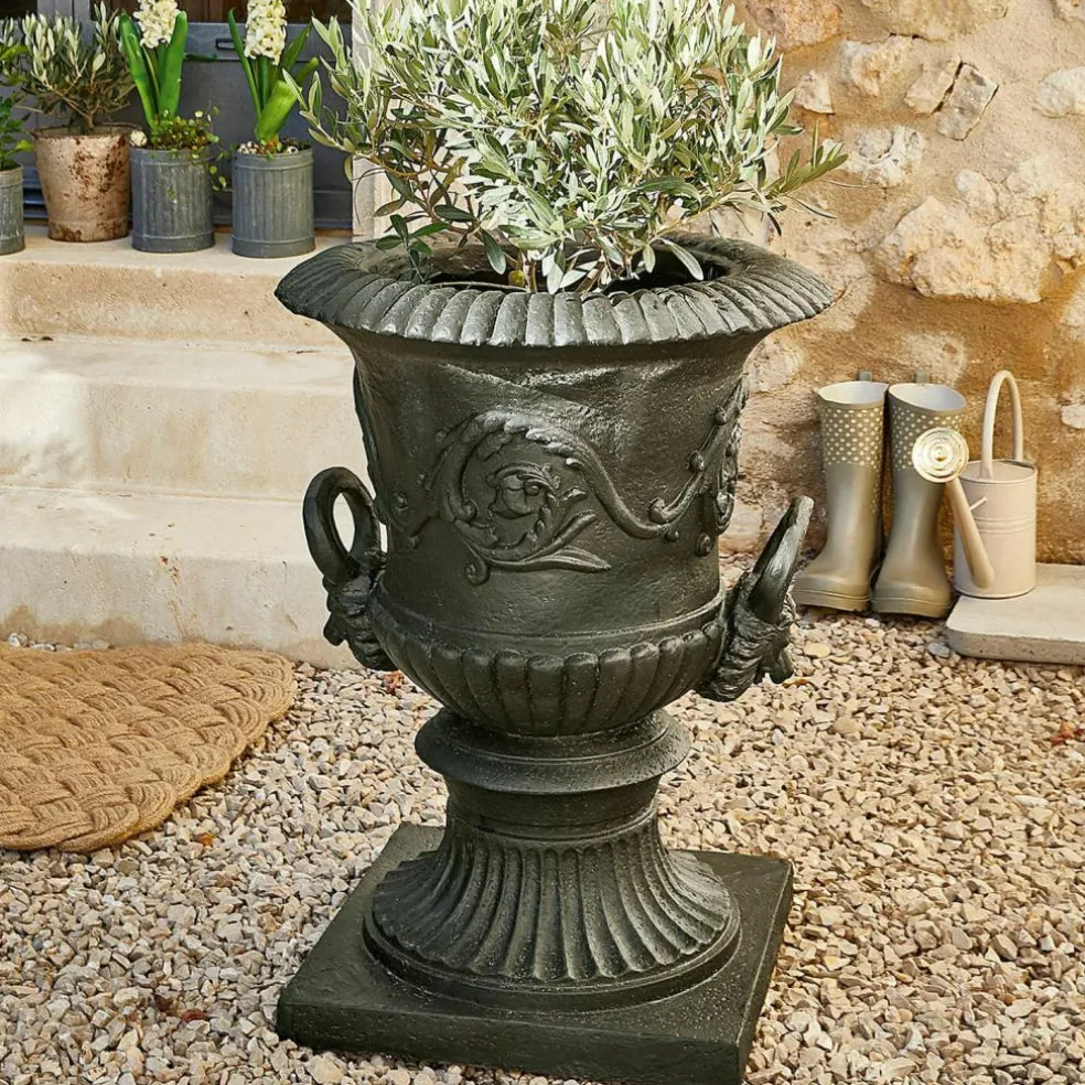 Belle amphore en résine synthétique. Elle ressemble à une amphore massive et paraît peser une tonne, mais si l’on y regarde de plus près, on remarque qu’il s’agit d’une copie extraordinairement réaliste en polyrésine. Elle reproduit les amphores anciennes que l’on peut admirer encore aujourd’hui dans de nombreuses orangeries. On a du mal à croire que cette reproduction artistiquement décorée ne pèse que 13 kg environ. L’avantage de la résine synthétique réside non seulement dans son poids réduit, mais aussi dans sa structure pratiquement inaltérable. Cette pièce extraordinaire fera donc votre bonheur pendant très longtemps.