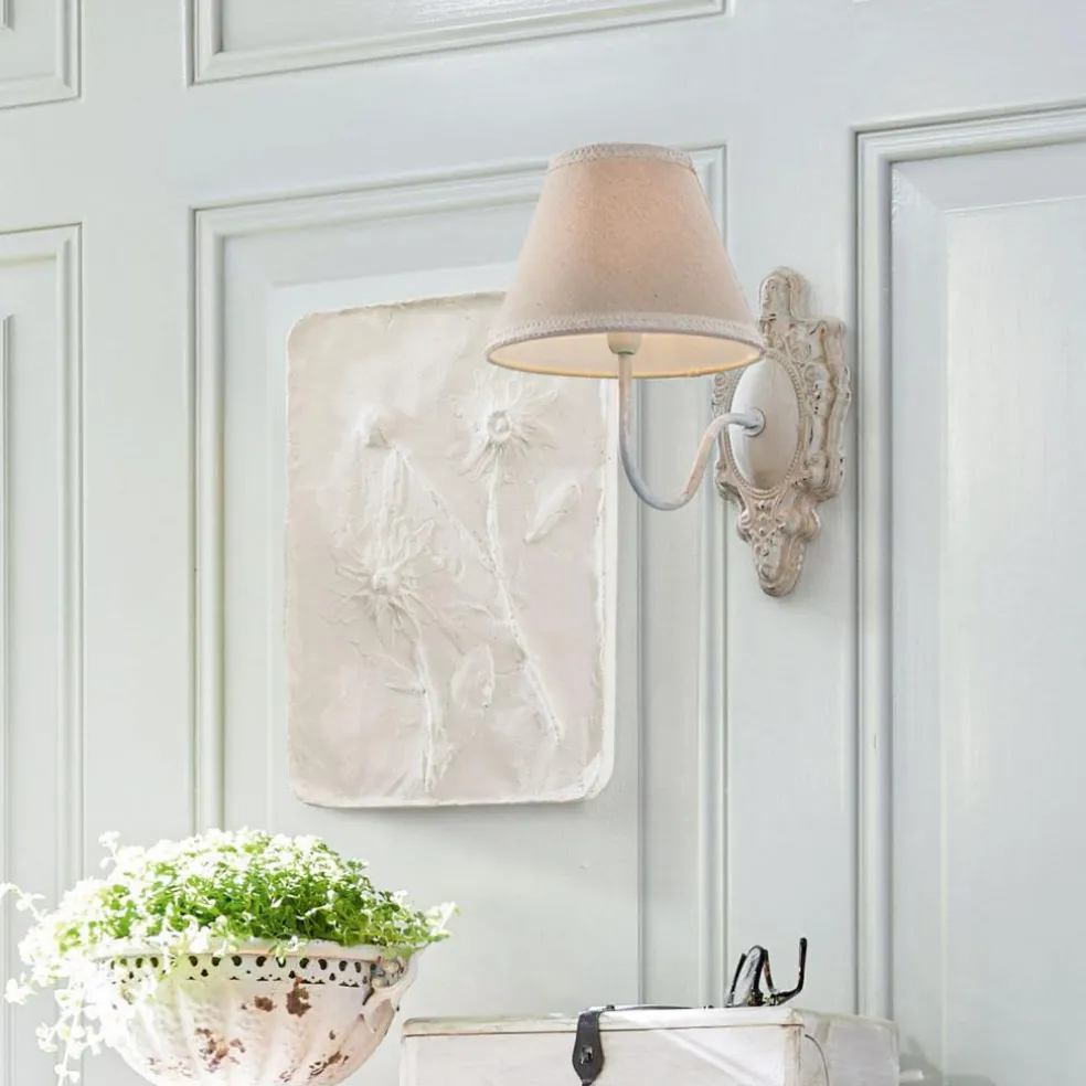 Une véritable pièce de rêve dans un style shabby chic. Cette magnifique lampe envoûte par le décor soigné qu’elle crée sur les murs de toutes les pièces, avec une touche nostalgique originale. Elle pourrait parfaitement venir d’un idyllique cottage. L’abat-jour est fabriqué en pur lin, avec de la superbe dentelle pour un rendu très romantique. Le délicat coloris rend la pièce plus harmonieuse, avec un bras dessinant une légère courbure pour compléter parfaitement le tableau. Appréciez son éclairage chaleureux et apportez une touche poétique et très décorative qui va particulièrement bien avec le style shabby chic. Cette lampe est également très élégante sur les murs des petites pièces car elle ne nécessite pas beaucoup de place. Vous pouvez par exemple la mettre dans votre salon pour éclairer votre fauteuil de lecture préféré. Ou alors servez-vous de son magnifique design pour illuminer votre chambre à coucher ou une chambre d’invité. Elle se fond merveilleusement bien dans les ambiances vintage, avec des impressions de roses, du bois patiné, du verre mercuré et d’autres détails romantiques. Délicate et féminine, une véritable pièce de choix.