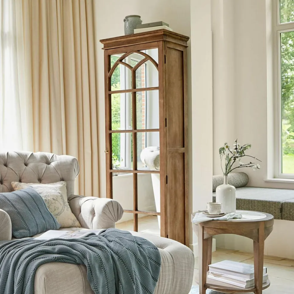 L’armoire se distingue par sa combinaison originale de bois naturel et d’une finition intérieure gris vieilli à l’origine d’un fascinant contraste de couleur. L’armoire de toilette au motif décoratif de fenêtre à croisillons n’est pas seulement très esthétique , elle apporte également un effet d’ouverture lumineux dans chaque pièce. À l’intérieur de l’armoire se trouvent des tablettes pratiques offrant beaucoup de place pour tout un tas d’accessoires. Le panneau arrière à l’effet planches confère à l’espace intérieur de l’armoire du style et du caractère. Dans le salon, la chambre à coucher ou le couloir : cette armoire à miroir est un meuble fonctionnel et décoratif qui trouvera sa place dans chaque pièce.