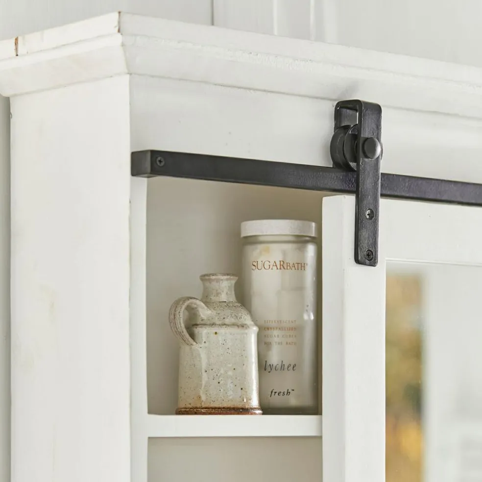 Une version raffinée de l’armoire de toilette classique. En bois de manguier de grande qualité. Avec la corniche typique, les étagères de rangement et une porte coulissante avec miroir. Si vous voulez transformer votre salle de bains en une oasis de bien-être dans le style accueillant maison de campagne, vous ne devriez pas non plus faire de compromis sur le style de l’armoire de toilette. C’est pourquoi nous vous proposons ce modèle au look raffiné et à la fonctionnalité optimale. Le corps du meuble est entièrement en bois de manguier de grande qualité, qui fera entrer une brise de fraîcheur dans votre salle de bains. Derrière la porte coulissante rehaussée d’un miroir se trouvent plusieurs compartiments, qui pourront accueillir tous les produits cosmétiques que vous souhaitez avoir à proximité du lavabo. Le dispositif coulissant rustique en fer donne la touche finale à son look élégant. A ce propos, nous aimerions attirer votre attention sur la table de toilette (19321) assortie à cette armoire de toilette, car en duo les deux modèles dégagent une ambiance de bien-être encore plus agréable !