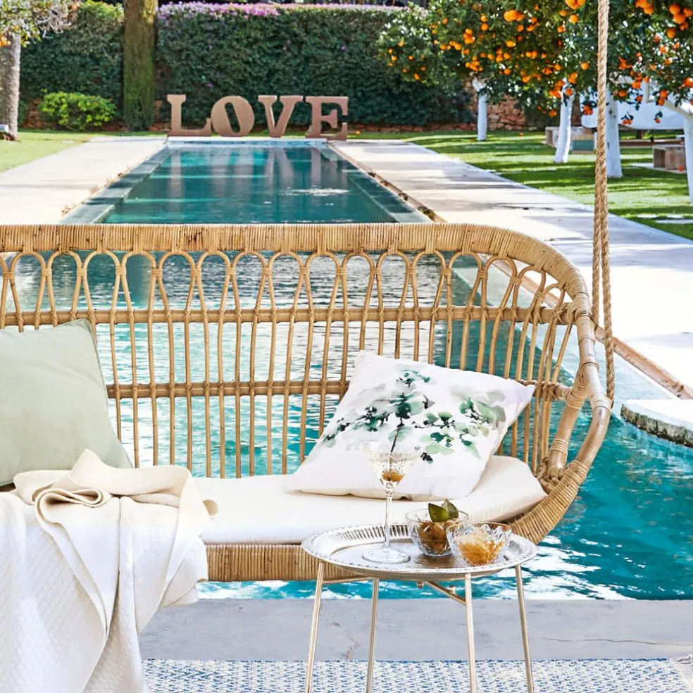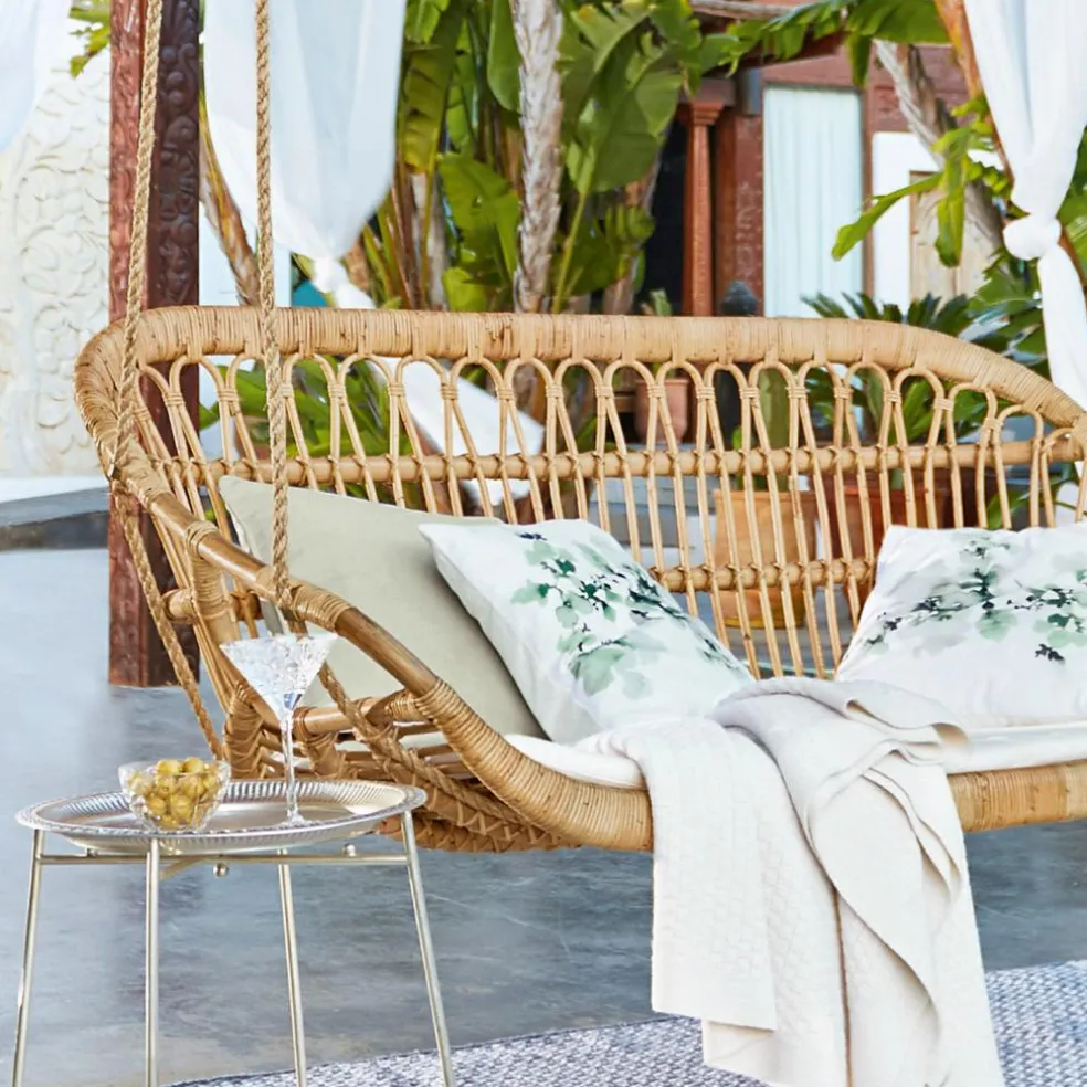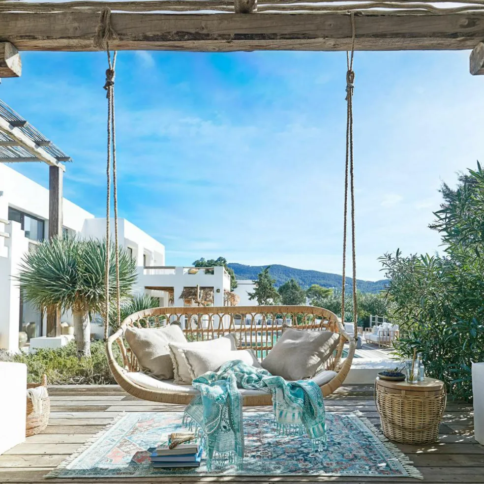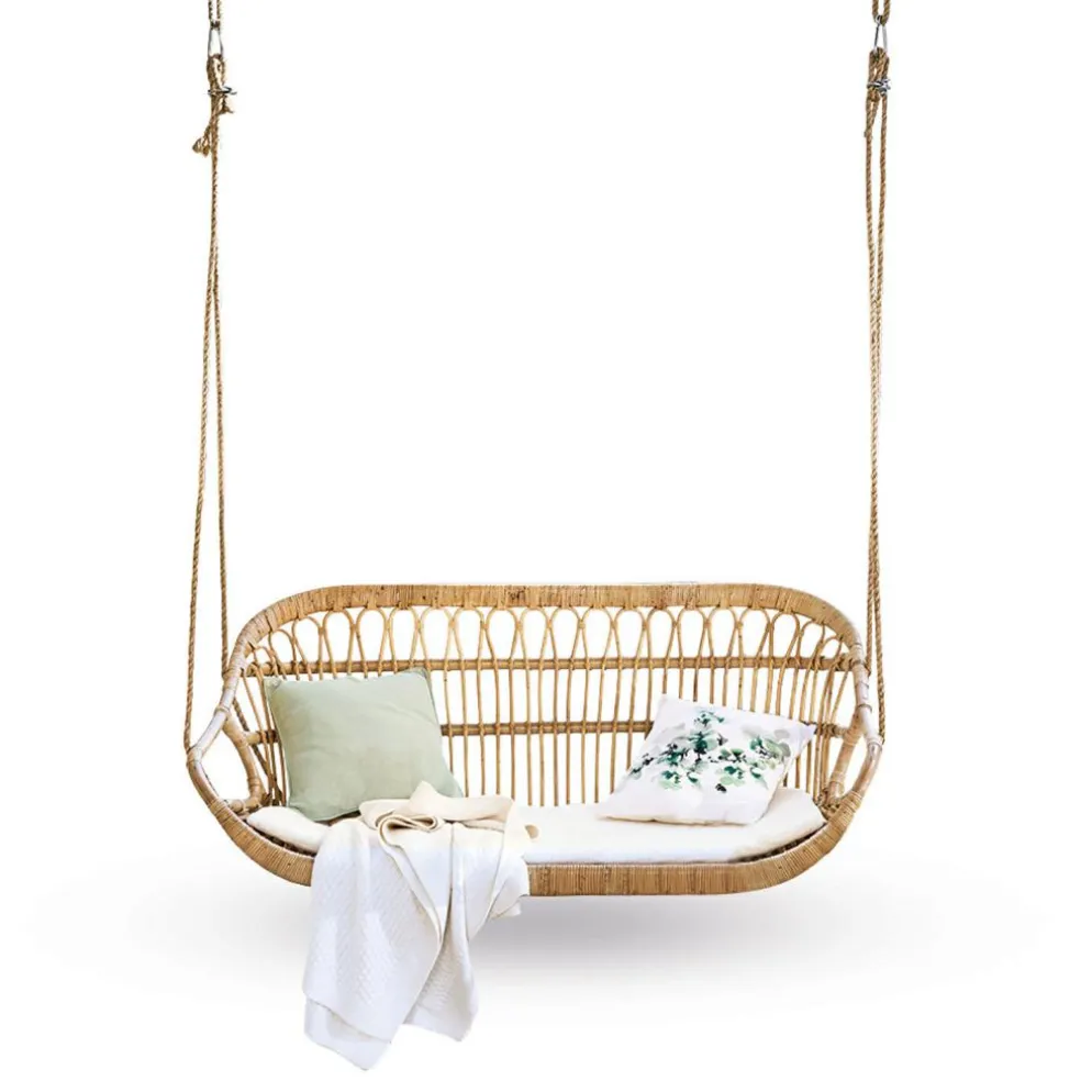 Votre endroit de détente absolue ! Superbe structure en rotin véritable tressé. Ce banc vous est livré avec une assise très confortable avec une housse solide. S’agit-il d’un banc ou d’une balancelle ? Nous vous laissons libre de choisir, mais une chose est sûre : vous y passerez de merveilleuses journées d’été ! Où que vous le placiez, ce banc fera sensation ! Par exemple au jardin, suspendu à une branche ou sur la terrasse, accroché au plafond. Et pourquoi pas au salon, devant la vue panoramique de votre fenêtre ? Prenez-y place l’après-midi pour profiter du soleil, ou lézardez-y en soirée quand la température est encore douce : vous apprécierez ses mouvements de balancement à l’effet apaisant sans pareil ! Son assise au moelleux irrésistible est recouverte d’une housse douce et solide : un vrai bonheur sur votre peau. Ce banc suspendu réussit le tour de force d’allier esthétique et qualité du plus haut niveau. Sa structure tressée en rotin naturel confère à ce banc un raffinement inouï, ainsi qu’une solidité à toute épreuve. La housse du coussin d’assise est amovible et lavable.