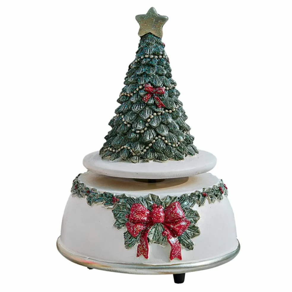 Travail artisanal de style vintage avec une finition brillante. Joue le classique de Noël, Jingle Bells. Le sapin tourne sur lui-même lorsque la musique retentit. Cet adorable petit bijou a été confectionné en résine synthétique. Ce classique de la période de Noël nous plonge dans l’ambiance des fêtes de fin d’année et nous rappelle notre enfance. Un plaisir aussi simple qu’agréable qui amène l’esprit de Noël dans votre maison. Décoratif et divertissant, cet objet pourrait bien marquer le début d’une nouvelle tradition de Noël ! Cette superbe boîte à musique à remonter formera une magnifique décoration sur la table ou une desserte et se marie à merveille au style shabby chic.