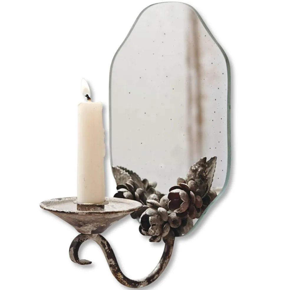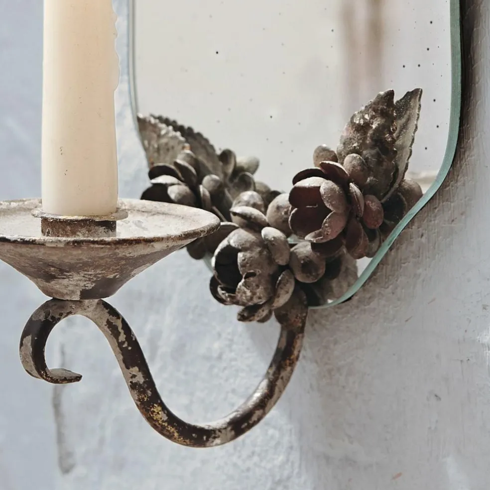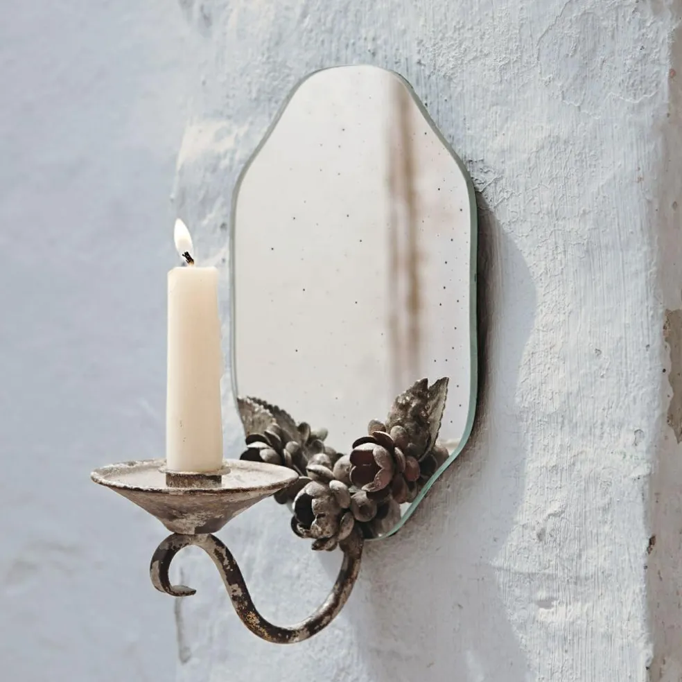 Ce bougeoir mural en fer avec des éléments floraux fait penser à un trésor trouvé dans un grenier ou à un objet de famille très spécial. La bougie est maintenue à l’arrière par un miroir à l’aspect ancien. Le reflet de la flamme vacillante crée un effet magique et plonge chaque pièce dans une ambiance lumineuse romantique. Même sans source de lumière, le bougeoir attire le regard et apporte à coup sûr la touche finale à votre intérieur. L’effet rendu de cet accessoire décoratif dépend de la façon dont vous le combinez et de ce avec quoi vous l’associez. Le bougeoir mural romantique s’accorde à merveille avec le style vintage. En contraste avec un intérieur plutôt moderne, il donne un peu plus de caractère et de charme à la pièce. Vous aimez la tradition et l’élégance ? Alors, faites de ce bougeoir votre objet de famille préféré. N’hésitez pas à inventer l’histoire qui l’accompagne.