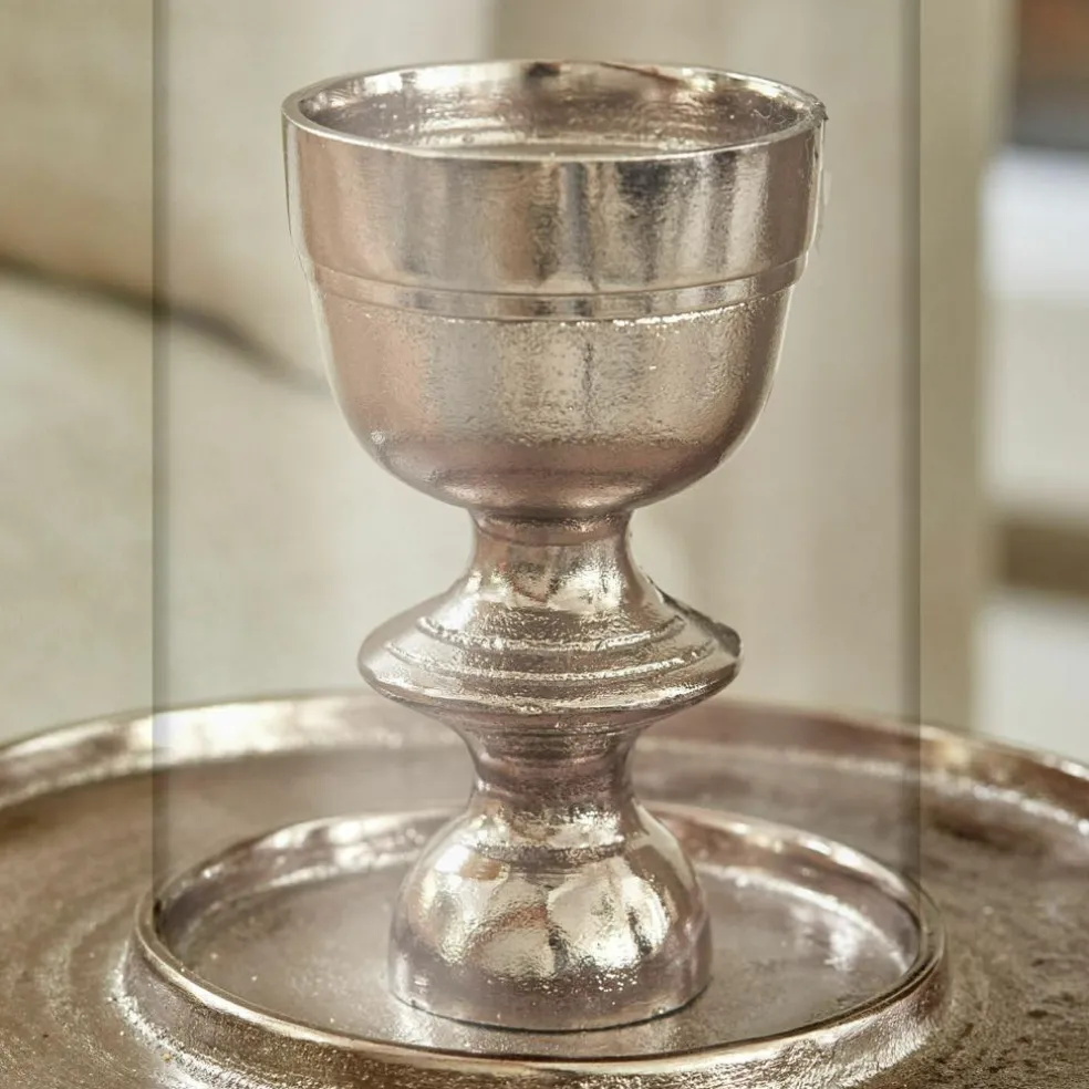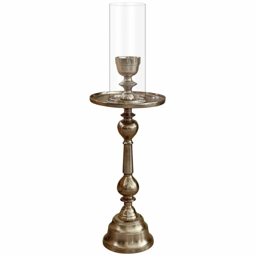 Ce bougeoir ne se contente pas simplement de diffuser de la lumière : c’est un véritable objet d’intérieur avec du caractère. Sa hauteur généreuse et sa forme solide lui confèrent une apparence impressionnante qui attire immédiatement le regard. Le bougeoir en forme de calice est entouré d’un haut cylindre de verre qui protège la flamme tout en réfractant délicatement la lumière. Particulièrement charmant : le plateau intégré autour du verre offre une marge de manœuvre créative, que ce soit pour une décoration saisonnière, un petit vase ou même une boisson. La finition argenté vieilli confère à l’ensemble une touche de charme vintage et fait de ce support un point de mire avec une valeur ajoutée fonctionnelle.