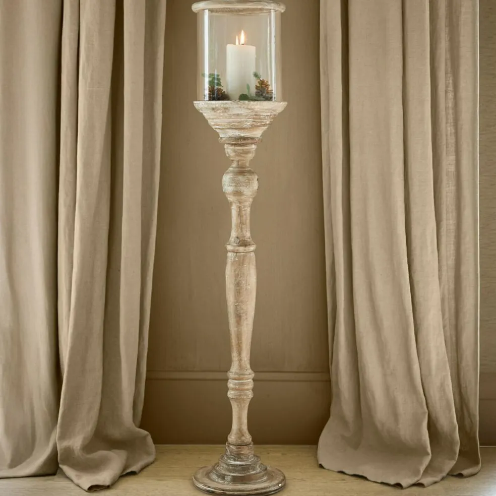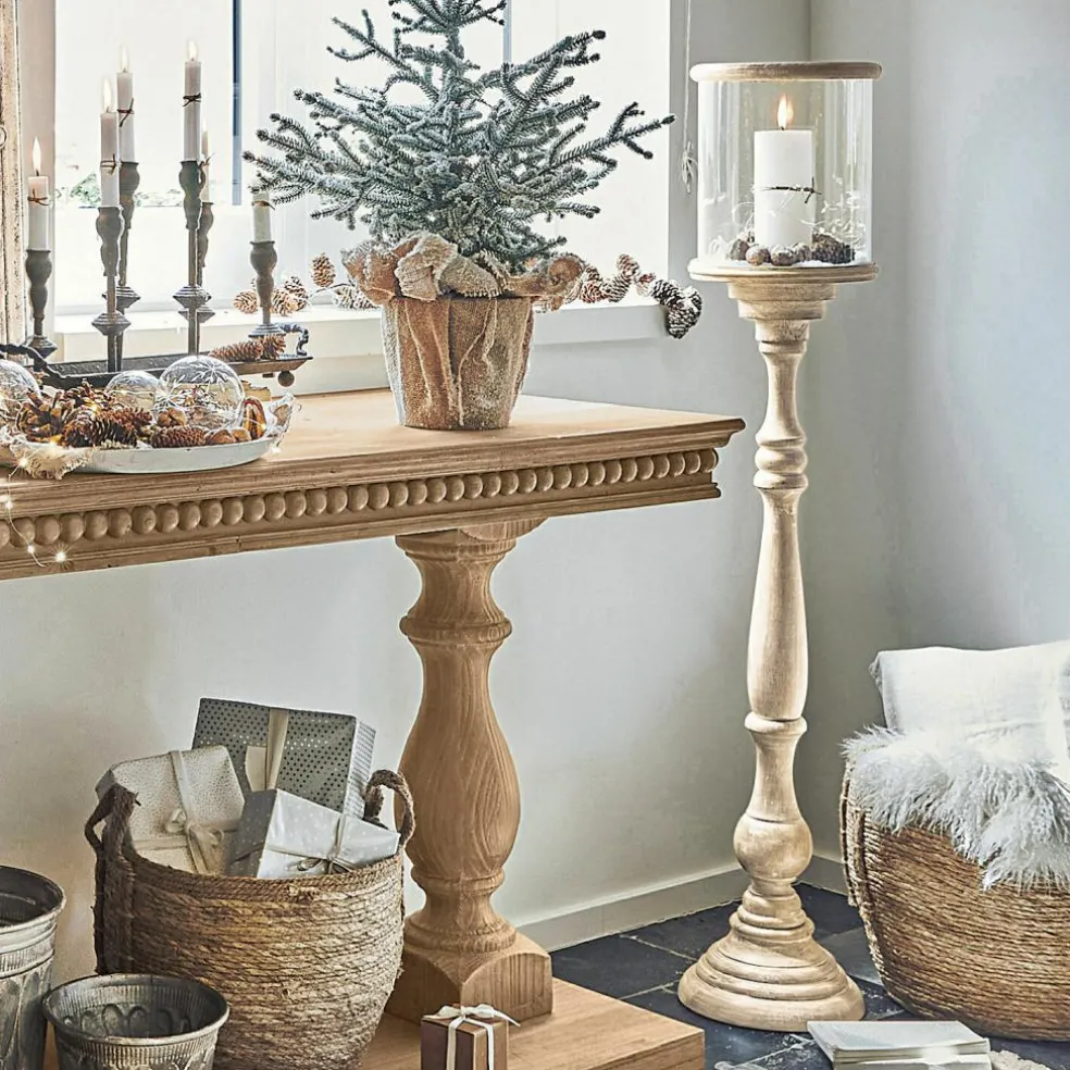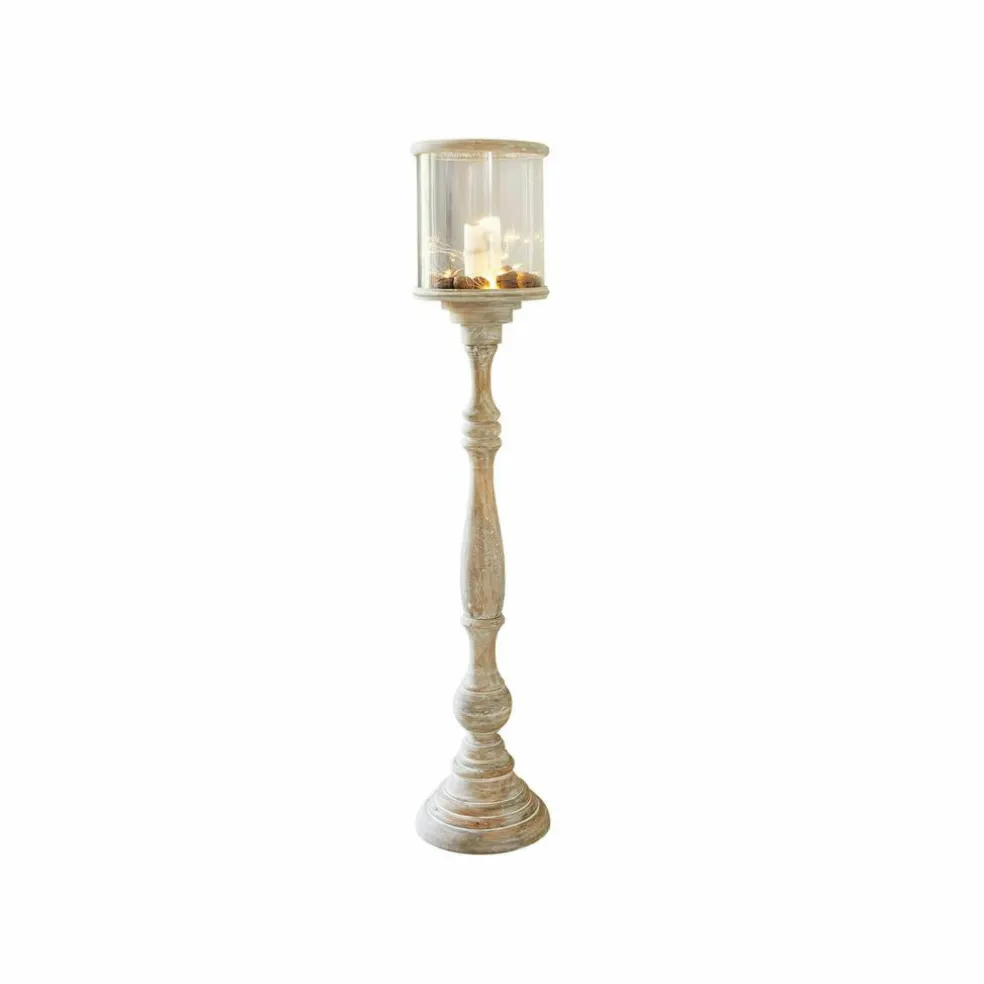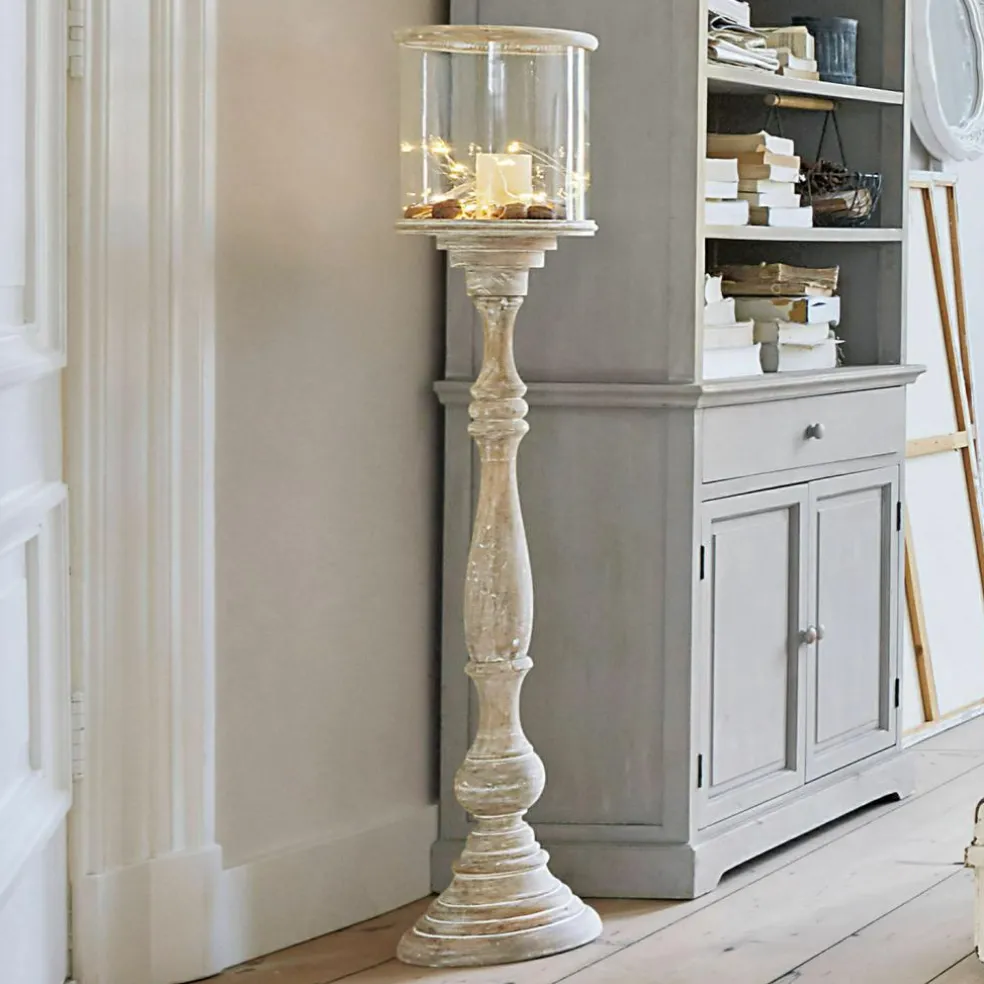 Un photophore élégant pour les amateurs de décoration hors du commun comme ce photophore qui se distingue par son grand format. Il associe une belle forme à un bois de manguier très finement travaillé, avec une finition blanc vieilli. Cet objet de décoration artistique pour de belles ambiances lumineuses dispose d’une protection en verre raffinée. La bougie à l’intérieur continuera à brûler malgré les coups de vent. Bien entendu, ce photophore n’est pas uniquement destiné à être utilisé à l’extérieur, sur un balcon ou une terrasse, mais également à l’intérieur, avec une lueur de bougie scintillante. Vous pouvez faire preuve de créativité dans le choix des bougies à placer sur le support prévu à cet effet, car elles ne sont pas fournies.