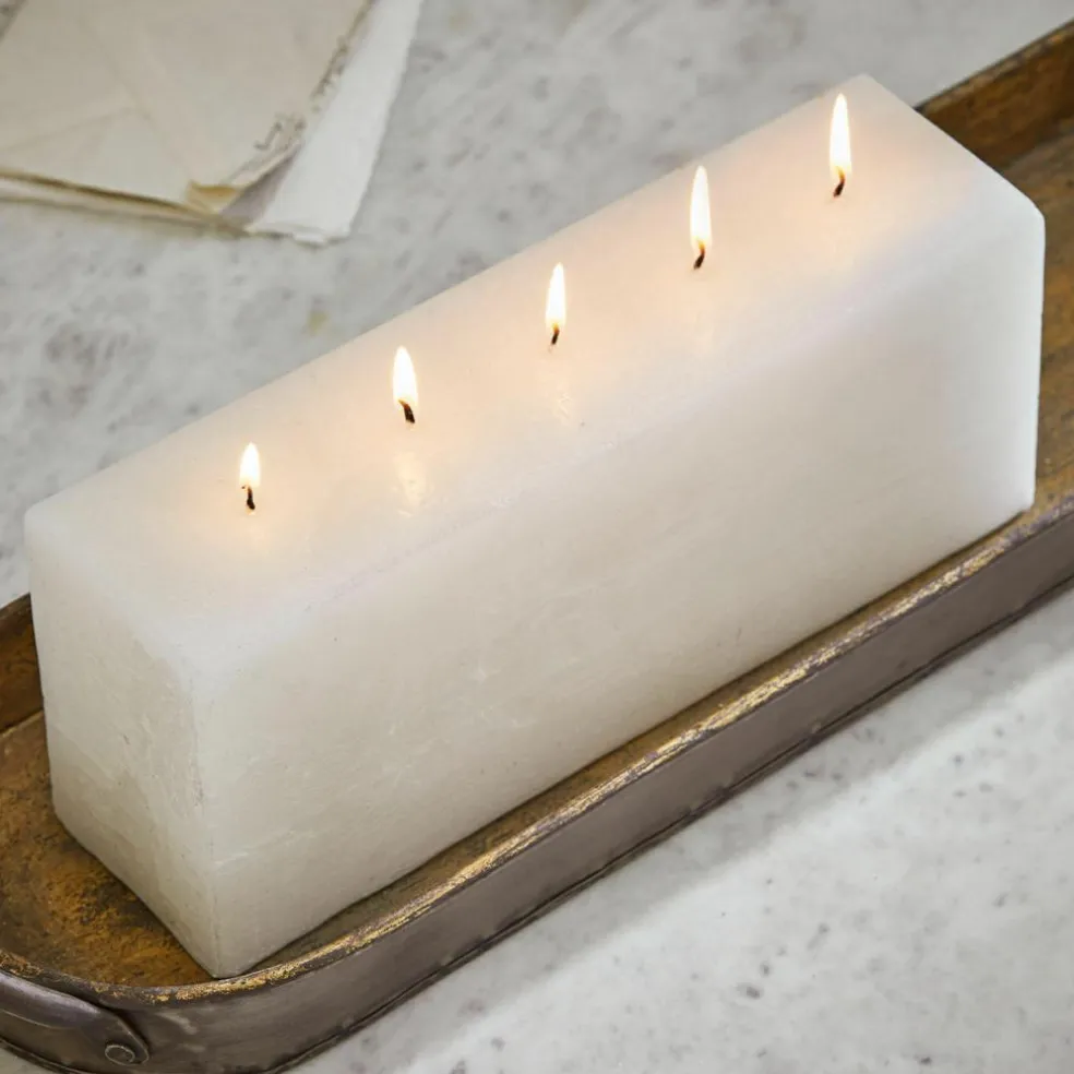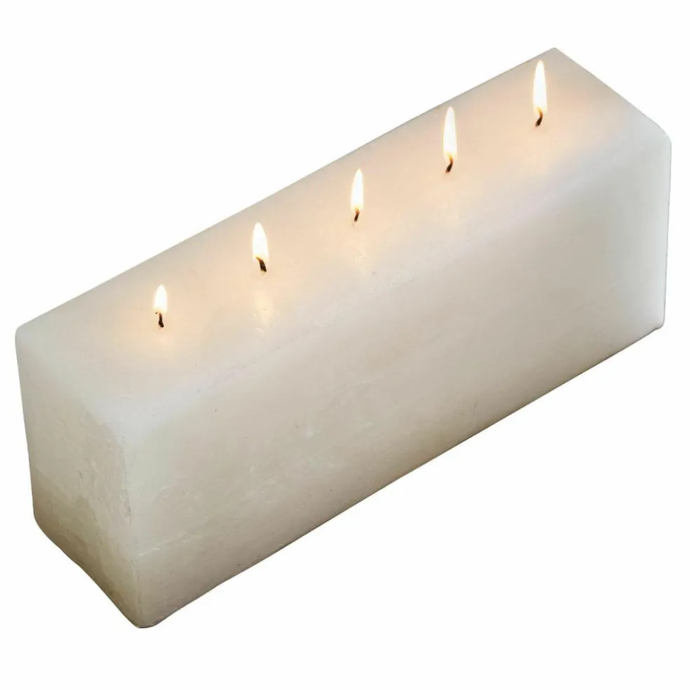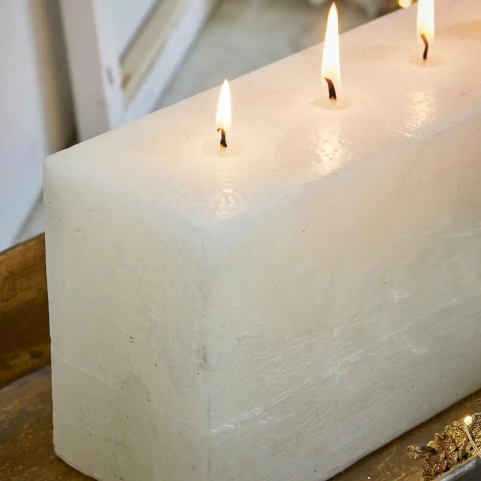 Plus qu’une simple bougie, ce modèle deviendra le point d’orgue élégant de votre décoration grâce à sa forme, son toucher et son effet. Sa silhouette rectangulaire apporte structure et clarté, tandis que cinq mèches placées à des intervalles réguliers créent un beau jeu de flammes. Le travail manuel minutieux et la cire teintée dans la masse confèrent à la surface une profondeur et un éclat particuliers. La fine brillance souligne les lignes contemporaines : parfait pour les intérieurs épurés comme naturels. Que ce soit pour une table de fête, sur le manteau de la cheminée ou comme point central d’une composition, cette bougie dégage chaleur et style.