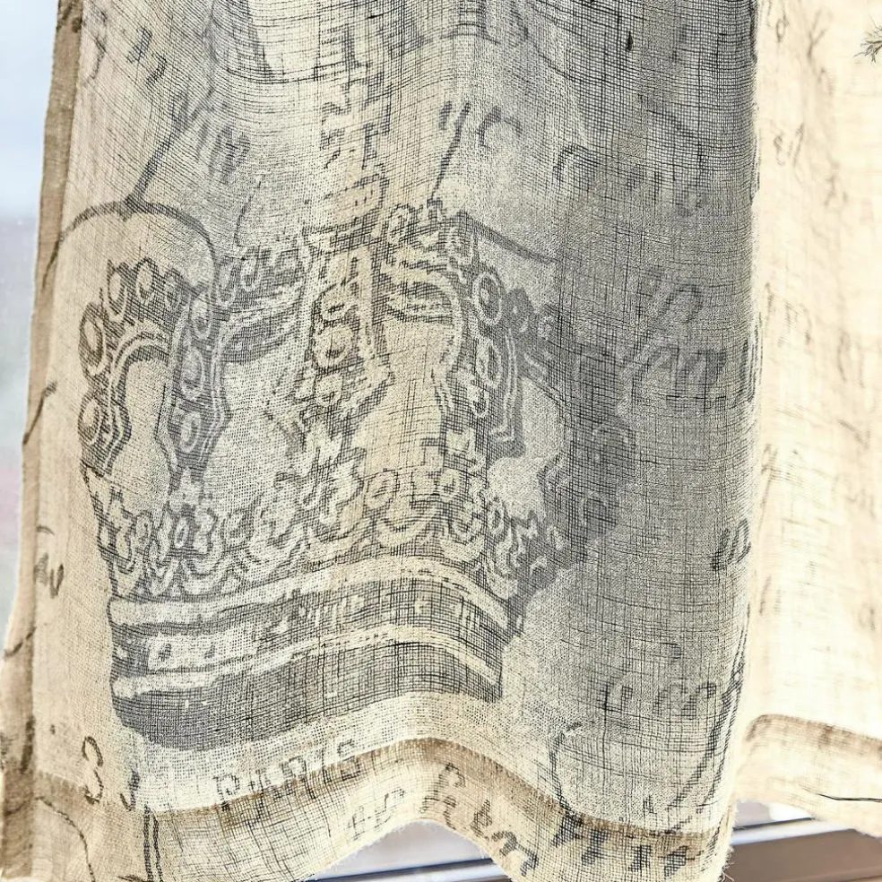 Ce brise-bise confère à chaque pièce une atmosphère unique. Le tissu en lin de haute qualité impressionne par sa structure naturelle et souligne le charmant caractère vintage. Le style très détaillé, avec des inscriptions tout en rondeur et une couronne décorative, raconte une histoire nostalgique inspirée d’un charme classique. Les liens pratiques facilitent la mise en place et créent un look décontracté et personnalisé. Que ce soit dans la cuisine, le salon ou le jardin d’hiver, cette œuvre d’art textile crée une combinaison harmonieuse de fonctionnalité et de design élégant.
