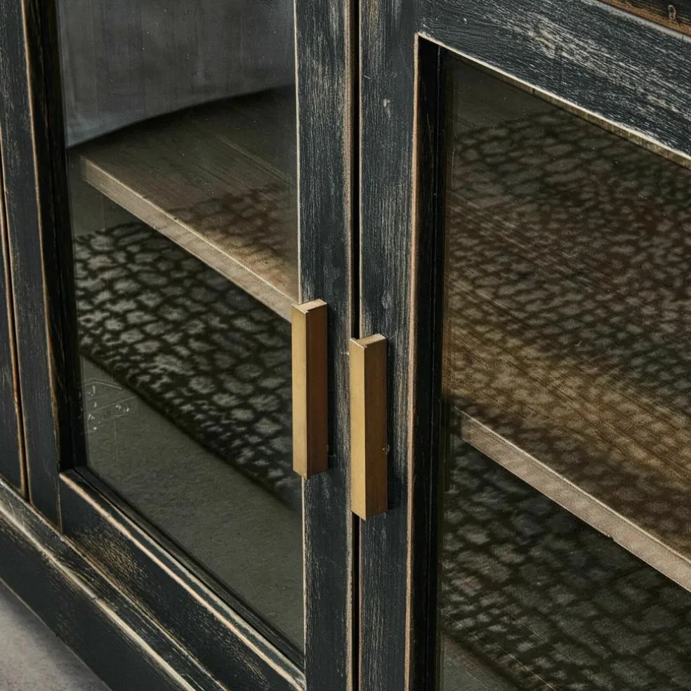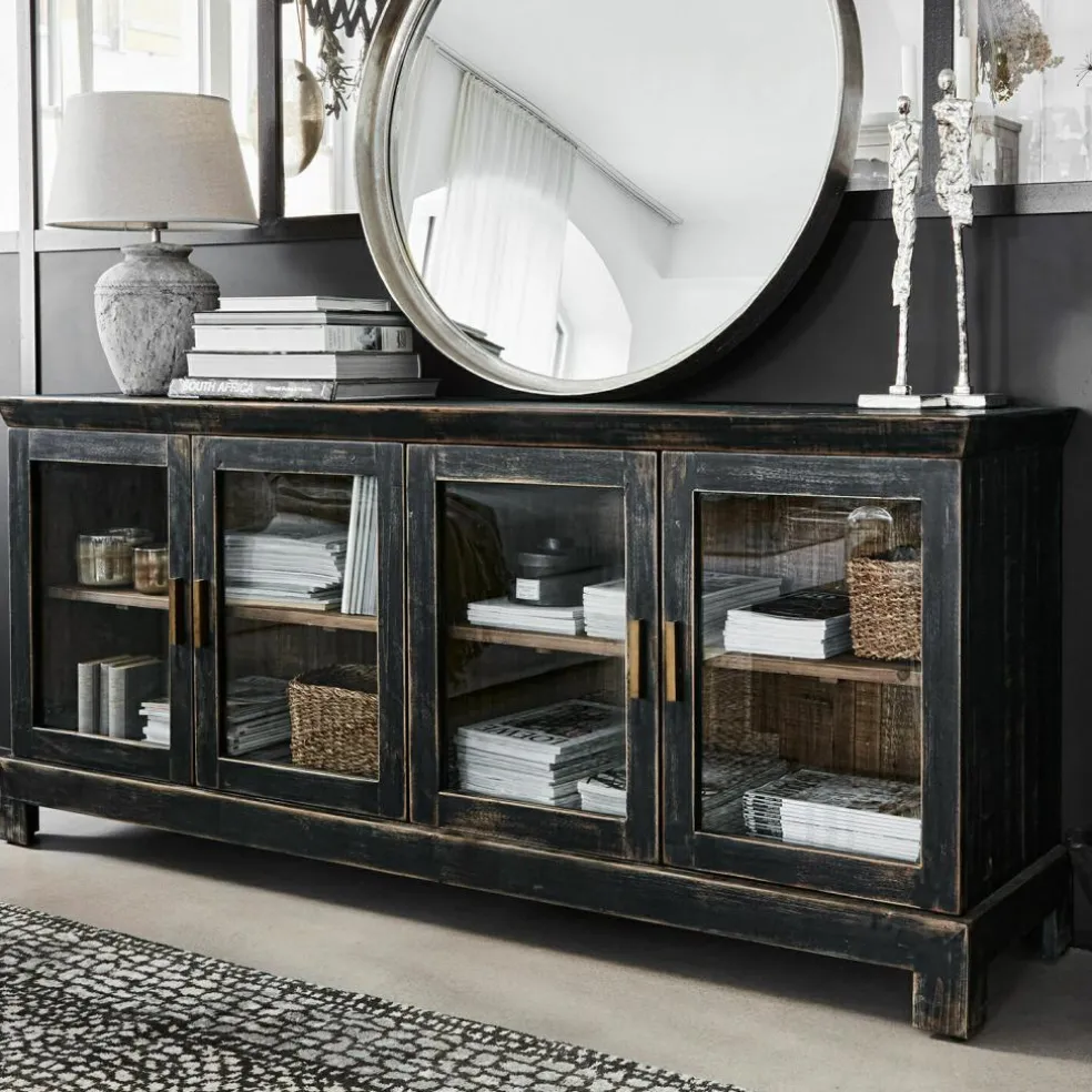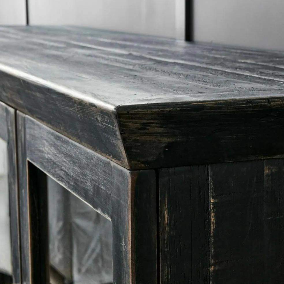 Mélange de couleurs propre au style industriel. Fabriquée en bois de sapin revalorisé et agrémentée d’une finition de couleur sombre. Portes avec charnières à fermeture automatique amortie. Cette console diffuse un charisme historique marqué par les siècles passés. Lourde et imposante, elle semble tout droit venue de l’époque de l’industrialisation. Son séduisant style vintage et son matériau particulier nous plongent dans le passé. Idéal pour ranger divers objets, ce joli meuble est en grande partie fabriqué en bois de sapin revalorisé. L’intérieur de la console est entièrement naturel. Ses séduisantes portes sont agrémentées de verre et disposent de charnières à fermeture automatique amortie. Cette console s’associe parfaitement avec l’armoire proposée sous la référence 20295.