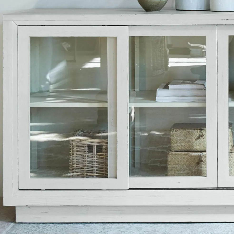Dans un atelier de menuiserie traditionnel sont créés des meubles qui vous accompagneront pendant de nombreuses années. En effet, des matériaux haut de gamme et un artisanat de la meilleure qualité sont les garants d’une longévité à toute épreuve. Et parce qu’un buffet bas est loin d’être un simple objet de décoration, puisqu’il doit vous permettre de ranger toutes sortes d’objets, il se doit aussi d’être extrêmement fonctionnel, ce qui est définitivement le cas pour ce buffet bas. Sur ses deux étages, vous pourrez exposer vos livres, votre vaisselle et vos souvenirs les plus chers, tout en les protégeant de la saleté et/ou des mains maladroites des enfants derrière les portes vitrées. Comme l’artisan a opté pour des portes coulissantes plutôt que pour des portes battantes classiques, il n’y aura aucun vantail pour vous gêner quand vous prendrez ou placerez quelque chose dans le buffet. Vous pourrez ainsi aisément l’installer dans une petite pièce ou un passage étroit. Cerise sur le gâteau pour tous les amateurs du style maison de campagne qui, en plus d’une décoration élégante, ont à cœur de préserver la nature : ce buffet bas a été réalisé en bois de sapin non pas fraîchement coupé, mais revalorisé.