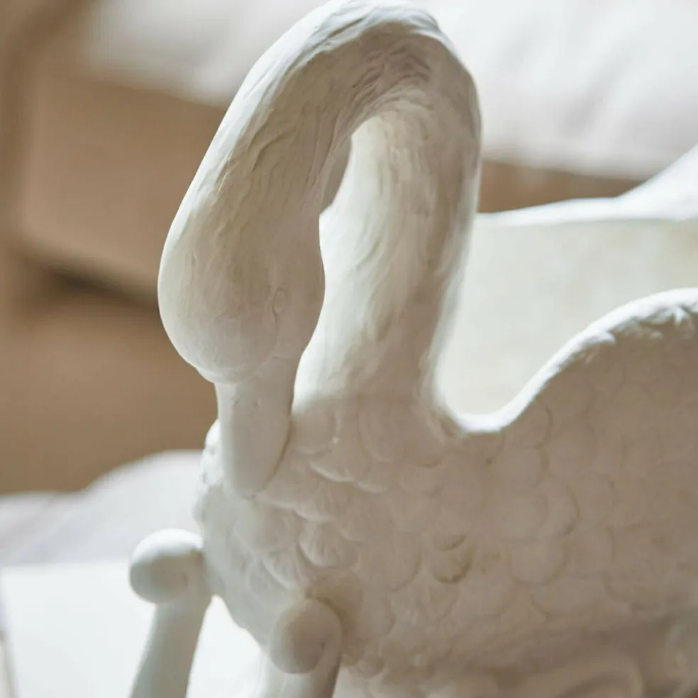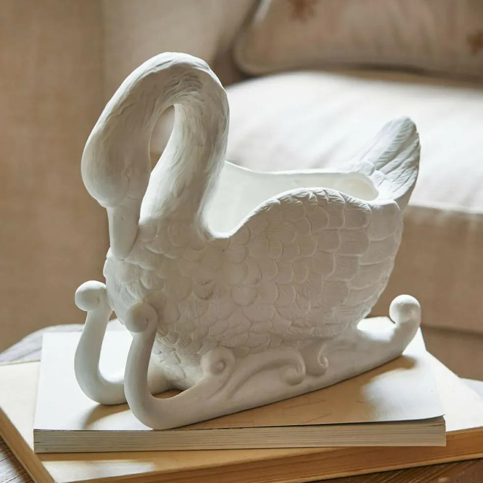 Avec sa tête inclinée avec grâce et ses ailes finement travaillées, ce cache-pot évoque la poésie d’un cygne sculpté dans la porcelaine. Sa surface blanc crème souligne la douceur de ses lignes et révèle le relief soigné des plumes. Qu’il soit présenté seul ou garni de mousse, de jacinthes ou de roses de Noël, le cache-pot devient une pièce maîtresse discrète mais raffinée de toute décoration saisonnière. Sa forme intemporelle, inspirée des figurines en porcelaine, apporte à l’intérieur une note d’élégance rêveuse.