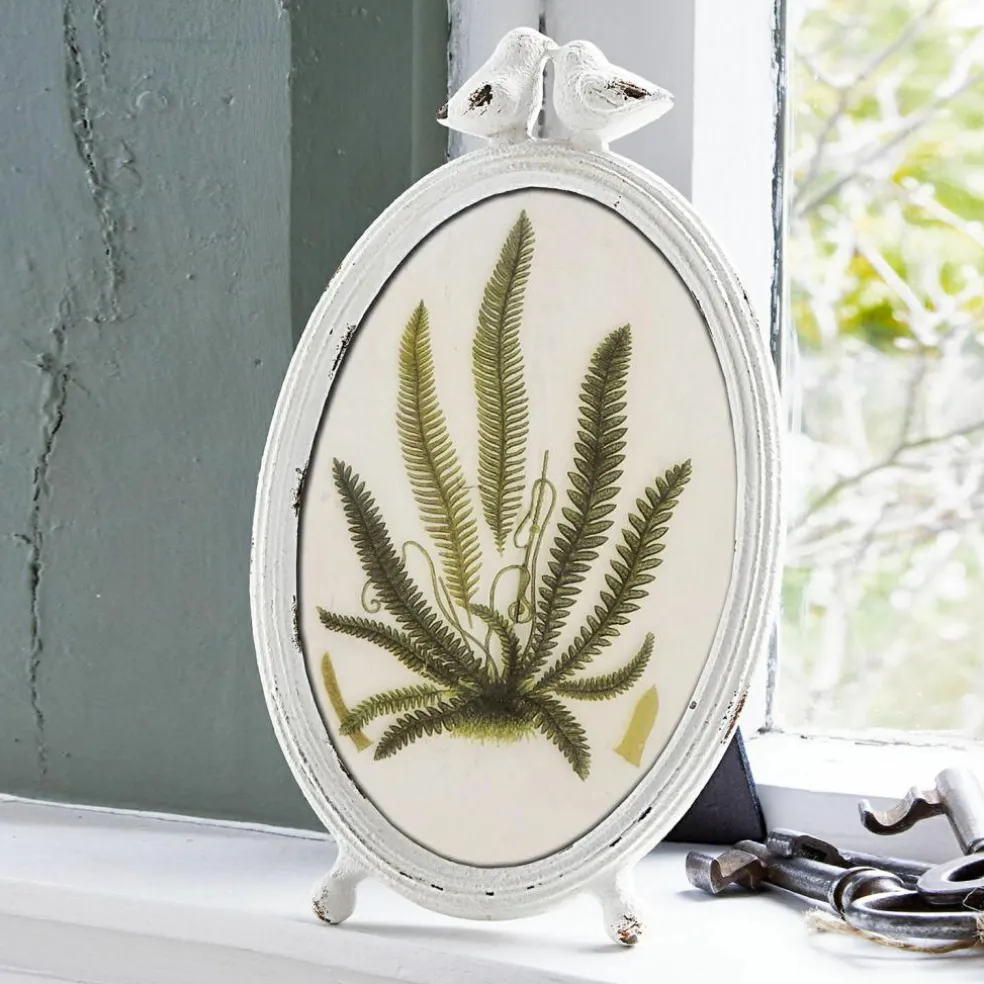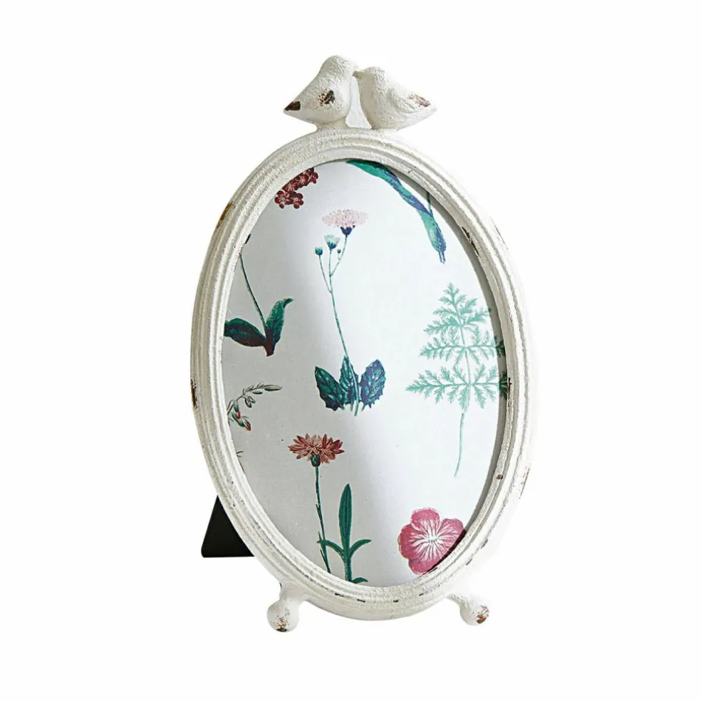 Ravissant aspect vintage. Orné de jolis petits oiseaux. Le charme shabby chic pour vos photos préférées. Une véritable petite merveille : ce beau cadre est vraiment très séduisant. Il s’harmonise parfaitement avec un intérieur shabby chic et offrira à de petites œuvres d’art et à vos photos préférées une place de choix, mais c’est aussi une excellente idée pour offrir des photos personnelles. La partie centrale est en verre, le cadre est en acier et le dos en MDF. Vous pourrez poser ce ravissant cadre sur un support, et il sera du plus bel effet sur un rebord de fenêtre, une table ou une étagère. Goûtez la touche de romantisme et le bel aspect fantaisie très particulier de cet accessoire !