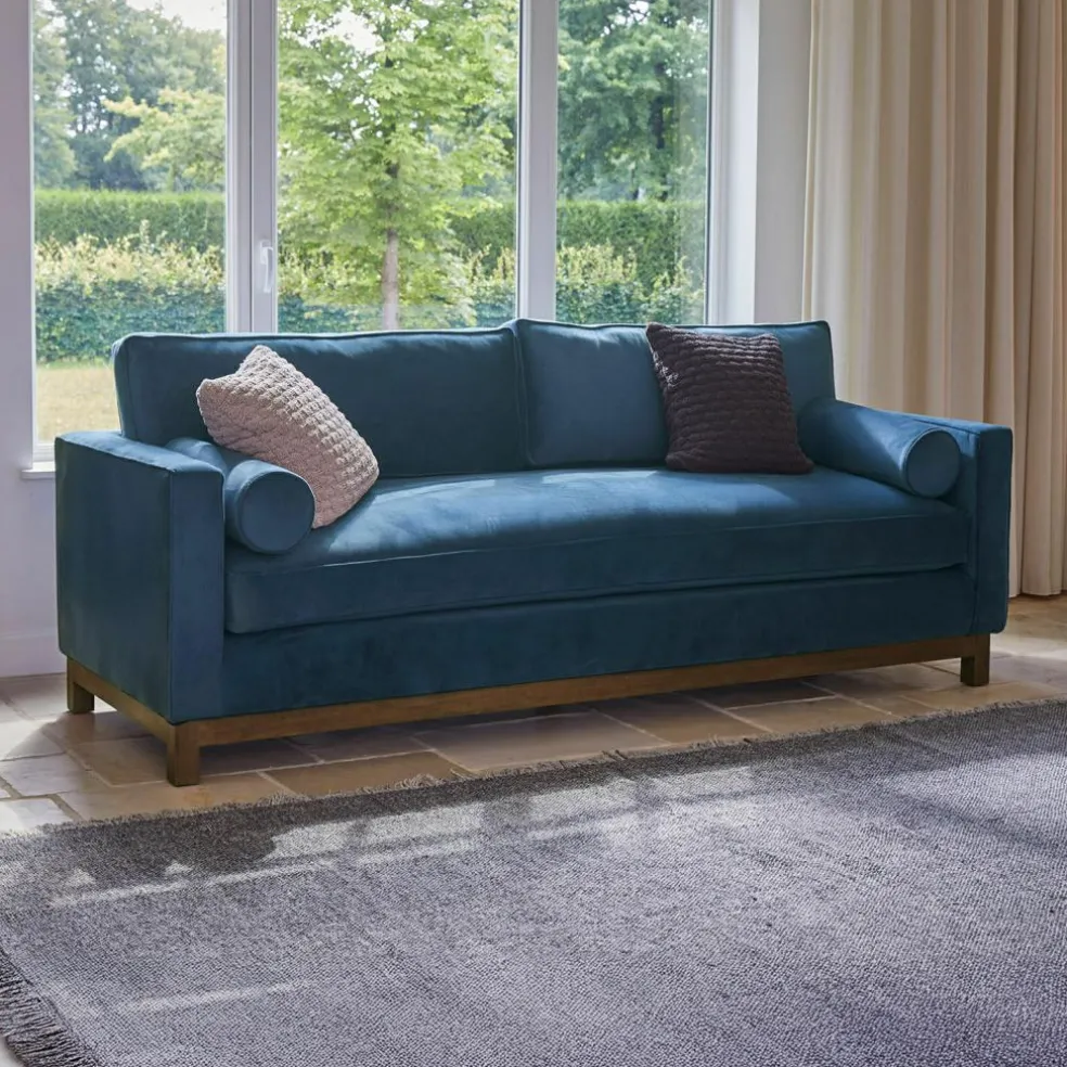 Ce canapé apporte de la sérénité dans la pièce, non pas par sa discrétion, mais par sa forme apaisante. Des accoudoirs rectilignes, un corps bas et une assise clairement définie lui confèrent une allure architecturale. Deux coussins cylindriques de type traversin apportent non seulement une touche d’originalité à l’ensemble, mais invitent également à s’appuyer, à se reposer et à se détendre. Le revêtement en velours doux confère au modèle un confort supplémentaire et convainc avec son toucher doux et sa brillance discrète. Les housses amovibles des coussins cylindriques rendent ce canapé encore plus fonctionnel. Un meuble qui convainc par sa forme sobre et son raffinement délicat.