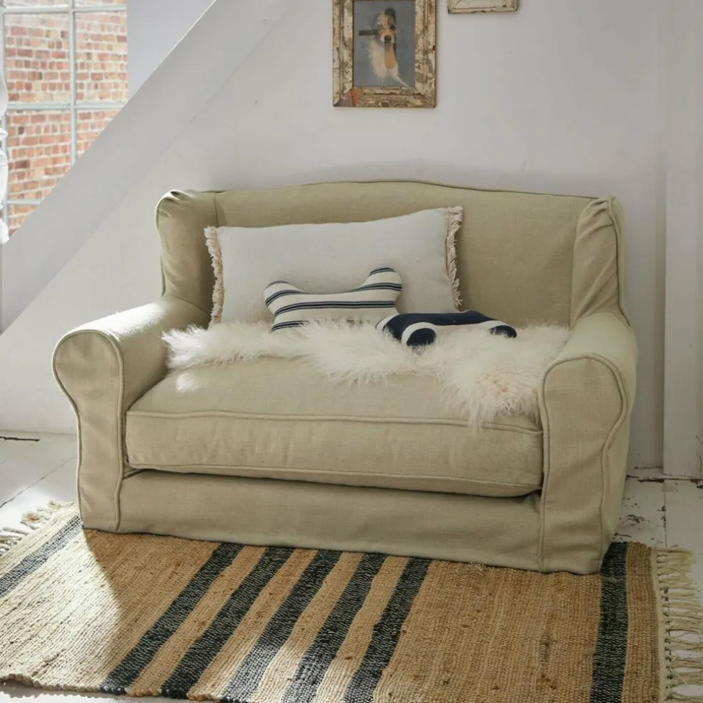 Plus qu’un couchage, ce canapé pour animaux est une véritable retraite élégante au charme chaleureux. Ses accoudoirs arrondis, son dossier haut légèrement incurvé et son assise ferme rappellent les fauteuils de club traditionnels, revisités en format miniature. Le textile structuré met en valeur son style naturel, tandis que la housse amovible en facilite l’entretien. Placé près d’une cheminée, au bout d’un canapé ou dans une véranda, il s’intègre harmonieusement à votre intérieur et offre à votre compagnon un lieu privilégié, alliant esthétique et bien-être.