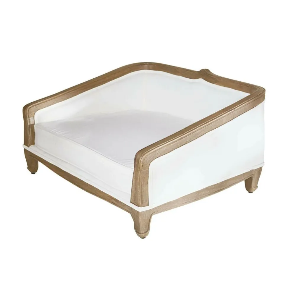 Ce canapé exceptionnel pour animaux domestiques est plus qu’un simple lieu de repos : il un havre de paix conçu avec le plus grand soin et qui s’intégrera avec style dans votre intérieur. Le cadre incurvé en bois de manguier massif à la finition vieillie discrète rappelle les meubles de salon classiques sans être envahissant. Le rembourrage moelleux invite à se blottir avec plaisir et est donc idéal pour les petites pauses ou les longs rêves. La housse s’enlève facilement et se lave en machine. Une combinaison harmonieuse d’esthétique, de confort et de praticité au quotidien.