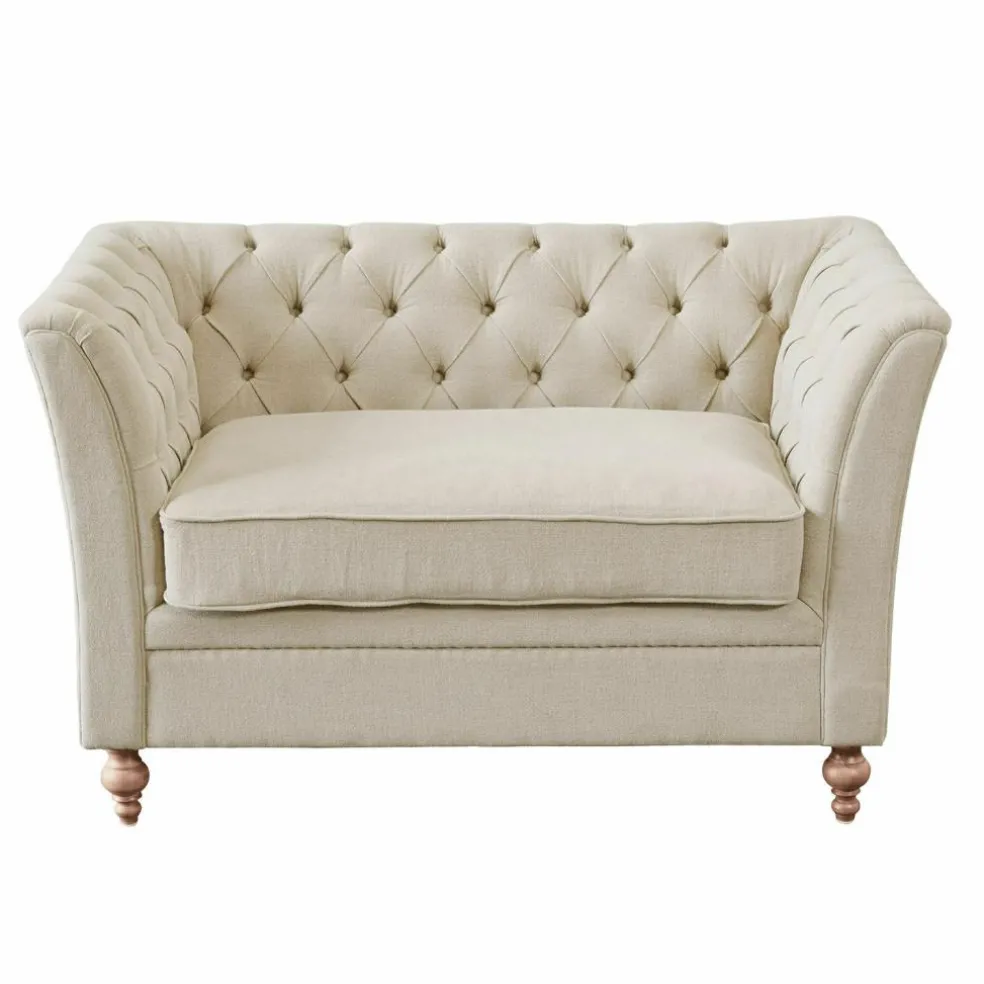 Ce canapé style Chesterfield est un classique au confort incomparable. Le revêtement résistant est très agréable au toucher tandis que le rembourrage est souple et indéformable. Le classique capitonnage à boutons qui dessine une belle structure à losanges, caractéristique du style Chesterfield, est tout aussi chic que les superbes pieds en bois tournés. Le revêtement doux et résistant, combiné à un rembourrage confortable, assure un excellent confort d’assise et la surface d’assise est suffisamment large pour accueillir deux personnes.