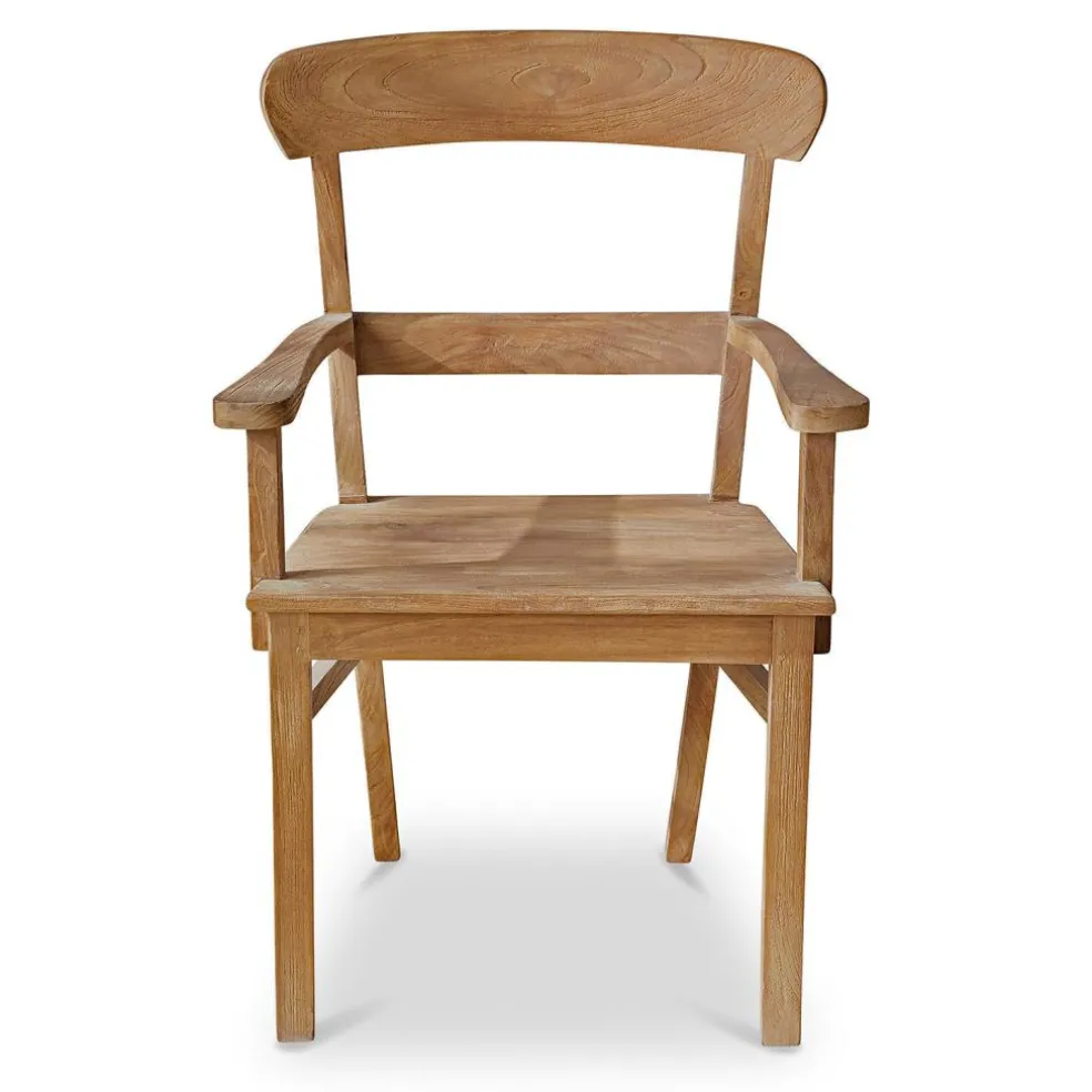 Très solide, cette chaise est un pur confort ! Grâce au bois de teck revalorisé, chaque chaise est une pièce unique. Avec un dossier ergonomique arrondi et des accoudoirs confortables. Sobre, cette chaise a pourtant ce petit quelque chose en plus qui caractérise le style maison de campagne d’aujourd’hui. Cette chaise, tout particulièrement, a cette forme simple et classique qui met en valeur tout le caractère du bois. En effet, il ne s’agit là pas de bois neuf, mais de bois de teck minutieusement revalorisé qui confère à cette chaise son style inimitable. De plus, chaque chaise est légèrement différente des autres, apportant une jolie touche de vie autour de la table. L’esprit rustique si charmant de cette chaise est également complété par une bonne dose de confort, invitant vos hôtes à oublier le temps et à profiter de bons moments entre amis, jusqu’au bout de la nuit ! Et pas d’inquiétude à avoir quant au gabarit de celui ou celle qui s’adossera à son dossier arrondi ou à ses accoudoirs : cette chaise est d’une extrême solidité.