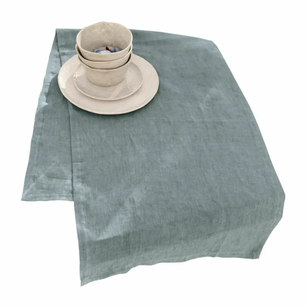 Un petit bijou de sobriété en lin teint en bleu.