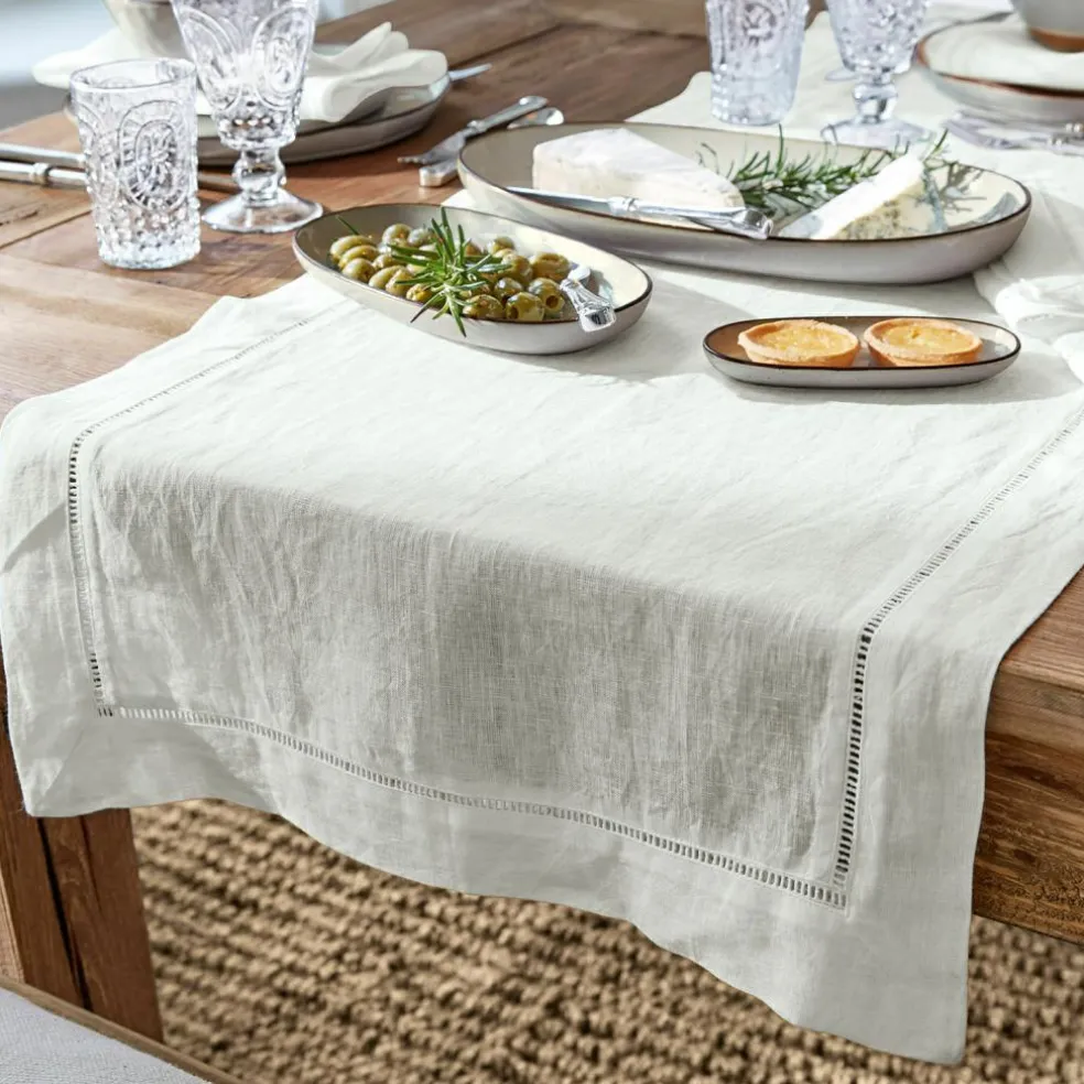 Un grand classique intemporel de la décoration. La broderie ajourée très fine dévoile de superbes accents. Assorti à tous les types de vaisselles. Ce chemin de table n’est pas seulement une belle alternative à la nappe, mais il séduit également par sa qualité de lin naturelle qui marque des points par sa structure animée, sa haute résistance et sa longévité. La broderie ajourée de haute qualité souligne le style classique et apporte une touche décorative discrète. Grâce à son côté sobre intemporel, le textile constitue le point central élégant de chaque table et se marie avec tous les types de vaisselle. En même temps, il peut être associé de manière créative à d’autres chemins de table, de sorte à ce que le veinage de votre table en bois reste toute de même visible. Assorti : le lot de serviettes réf. 20529.