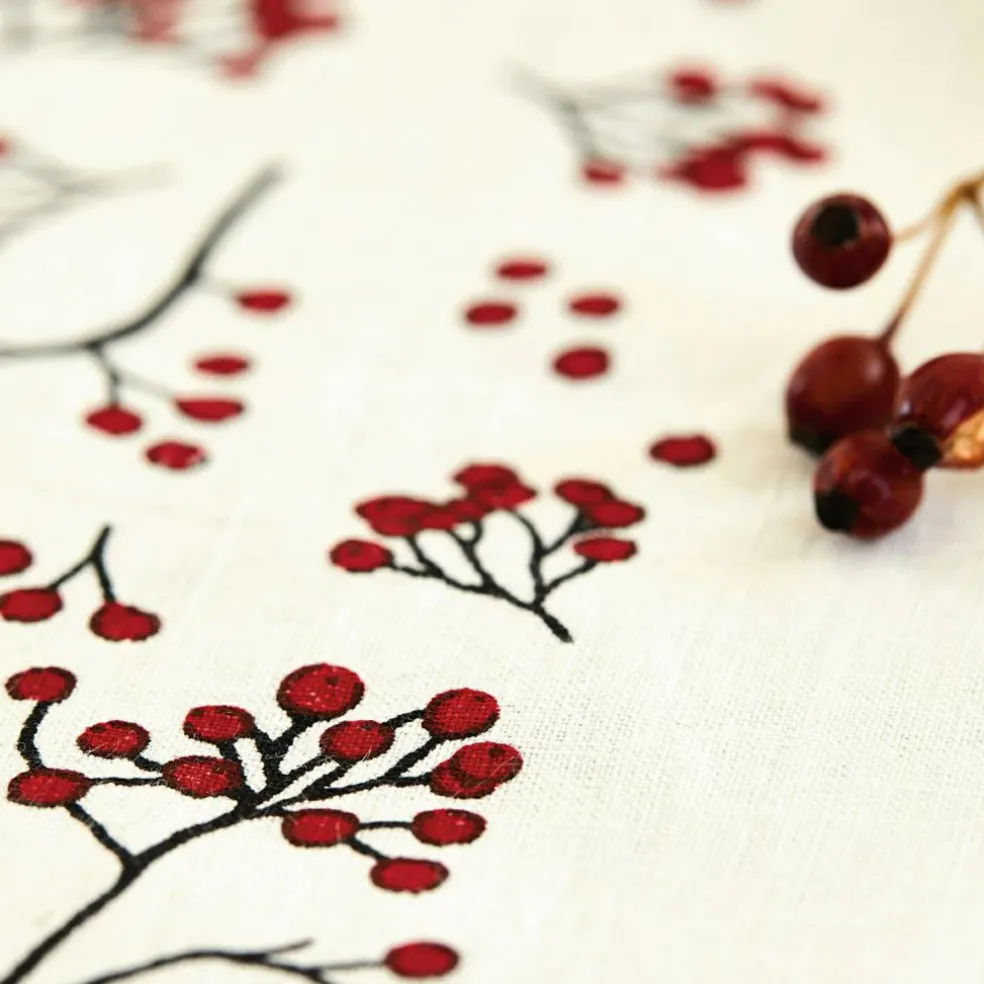 Un superbe point de mire pour votre intérieur maison de campagne. En lin solide. Imprimé décoratif sorbier des oiseaux.