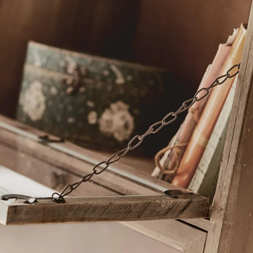 Les cinq compartiments vitrés permettent d’exposer vos beaux objets. Vos précieux livres et pièces de collection seront ainsi rangés à l’abri de la poussière. Dans la cuisine, cette commode est également très pratique pour ranger des bocaux, de jolis verres ou de la belle vaisselle. En sapin massif à la finition ancienne.