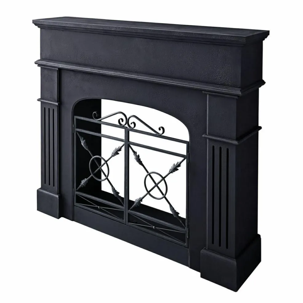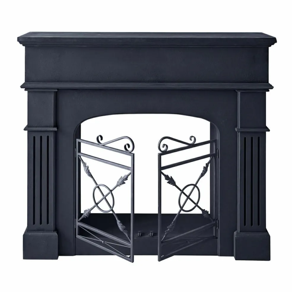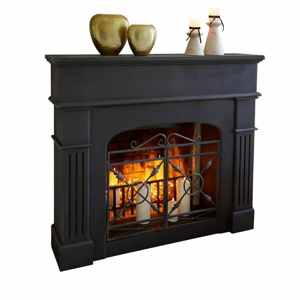 Une cheminée qui n’a pas besoin de feu pour réchauffer la pièce – son aura fait l’affaire! Cette console de cheminée séduit par ses lignes claires, son noir antique profond et sa surface mate qui présente volontairement des irrégularités. L’élément en fer joliment travaillé dans la partie inférieure, qui rappelle les grilles de protection qui agrémentent les cheminées traditionnelles, attire particulièrement l’attention et confère à l’ensemble une note authentique. Que ce soit dans le salon, l’entrée ou la chambre à coucher, cette pièce est plus qu’une décoration: c’est à la fois une scène, un cadre et une véritable pièce maitresse.