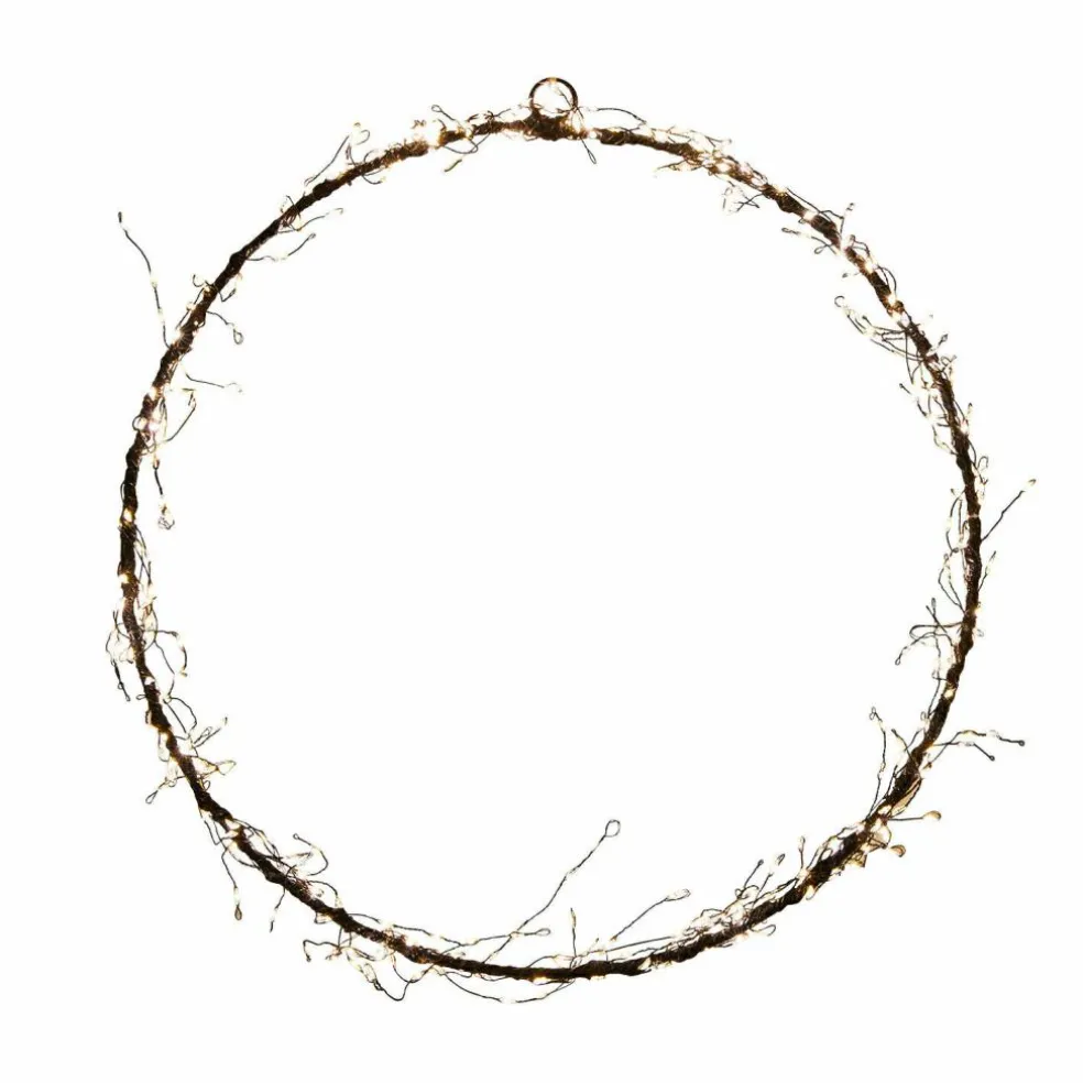 Telle un cercle d’étoiles lumineuses, cette couronne en LED attire l’attention : elle est discrète à la lumière du jour, spectaculaire dans l’obscurité. Les délicates lumières filaires s’enroulent autour du cadre métallique très fin avec une grande densité et le font briller d’une douce lumière blanche et chaude. Que ce soit au-dessus de la porte d’entrée, à une fenêtre ou sur la terrasse, sa lueur harmonieuse crée une atmosphère pleine d’ambiance pendant l’hiver. Particulièrement pratique : grâce à sa construction robuste, la couronne résiste au vent et aux intempéries et fait également bonne figure à l’extérieur. Un véritable atout pour tous ceux qui souhaitent allier décoration festive et discrétion moderne.