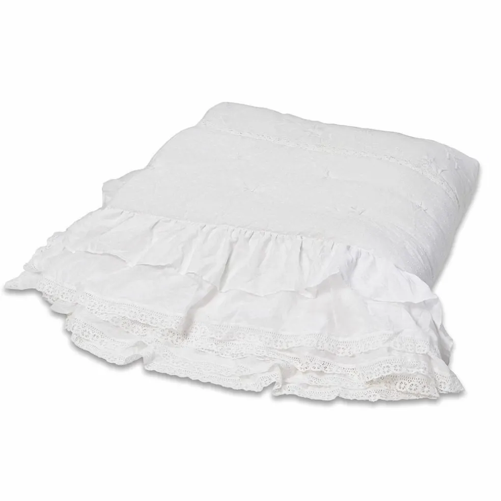 Cet article vous réjouira par la qualité des broderies en filigrane, des ornements et des volants. L’art anglais de la courtepointe s’allie avec succès aux techniques françaises. Vous tomberez sous le charme des broderies en filigrane, des ravissantes bordures et des volants en dentelle. Le garnissage particulièrement moelleux de cette courtepointe régule la température. Ce couvre-lit est donc idéal en toute saison. Ajoutez une belle touche d’élégance à votre lit !