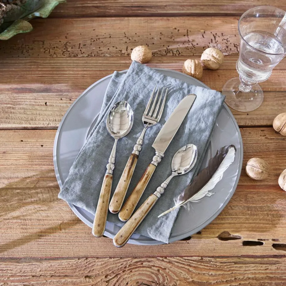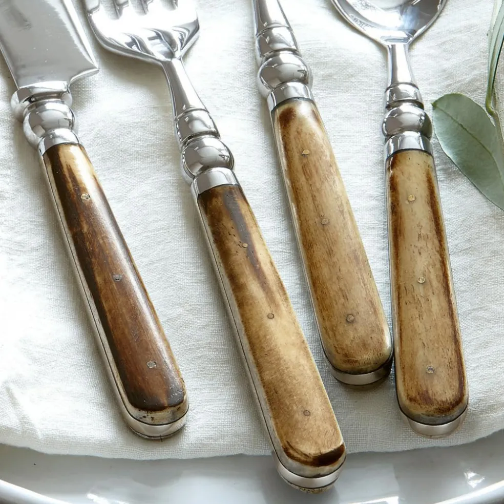 En acier inoxydable et véritable corne de buffle d‘Asie. Elégante et attrayante association de matériaux. Pour une table d’un chic élégant. Cet beau mélange de matières confère au lot de couverts un charme tout particulier. Une touche rustique accompagnée d’un brin de nostalgie s’invite ainsi à votre table. Pour le quotidien ou les occasions spéciales, ces couverts vous feront apprécier davantage encore chaque repas.