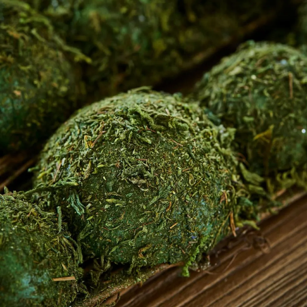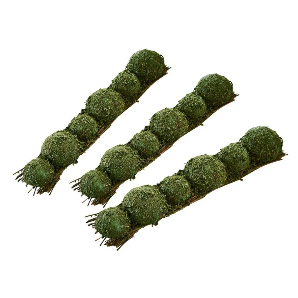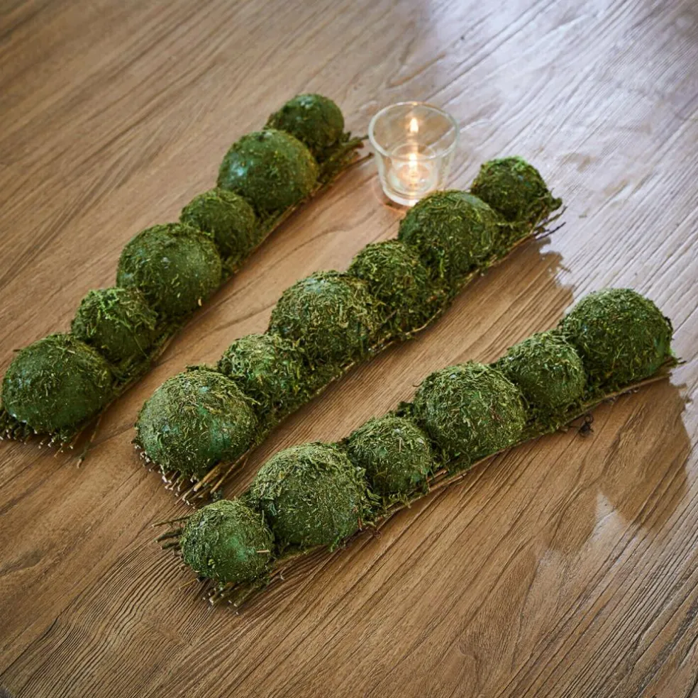 Comme si elle venait d’être tirée de la forêt – c’est l’impression que donne cette guirlande artistique avec ses ballots denses vert mousse sur des branches de rotin rustiques. La surface en mousse véritable joue avec les textures et les accents naturels, tandis que les formes légèrement incurvées guident l’œil à travers la décoration comme de petites collines forestières. À l’intérieur, un noyau de mousse indéformable permet d’y insérer facilement des accents saisonniers tels que des fleurs séchées, des branches de baies ou des picots de Noël. Que ce soit pour décorer la table, le rebord de la fenêtre ou le manteau de la cheminée, cette guirlande est une invitation à la transformer sans cesse et à la rendre unique.