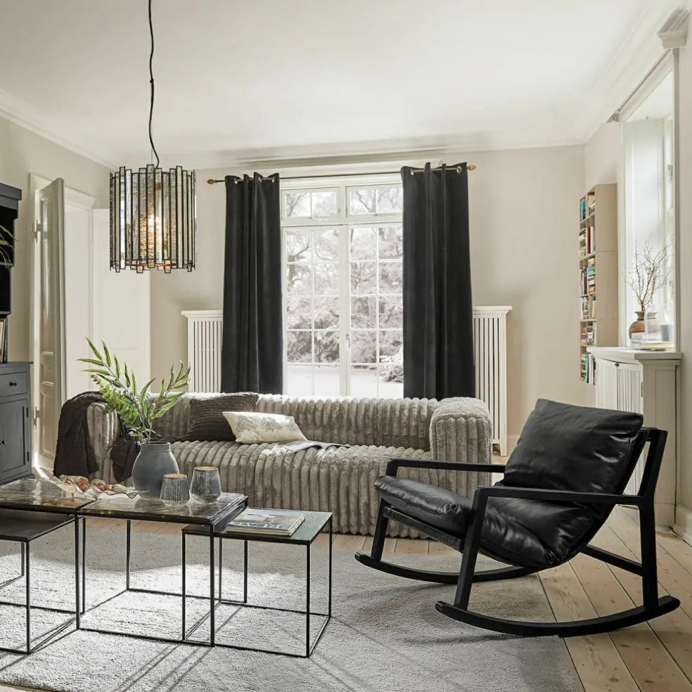 Créez une oasis de détente avec ce superbe fauteuil à bascule. Les doux mouvements de balancelle invitent en effet à la décontraction et au rêve, tandis que le large rembourrage et le beau cuir véritable vous envelopperont de leur luxueuse douceur. L’élégante structure en bois de frêne massif s’intègre aisément à tous les intérieurs et dégage une ambiance intemporelle. Les patins sont dotés d’une housse en tissu non seulement esthétique mais aussi pratique car elle protège vos sols des rayures. Laissez-vous séduire par ce fauteuil à bascule qui vous plongera dans un univers de bien-être.