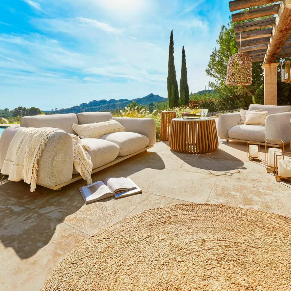 Un fauteuil d’extérieur qui ne fait aucun compromis sur le confort et la fonctionnalité. Ses coussins généreux et son assise profonde créent un lieu de retrait agréable en plein air. Le revêtement en fibres d’oléfine souple et légèrement imperméable lui confère non seulement une résistance aux éléments, mais aussi une sensation agréable au toucher. Les accoudoirs et le dossier délicatement arrondis apportent un sentiment de sécurité supplémentaire.