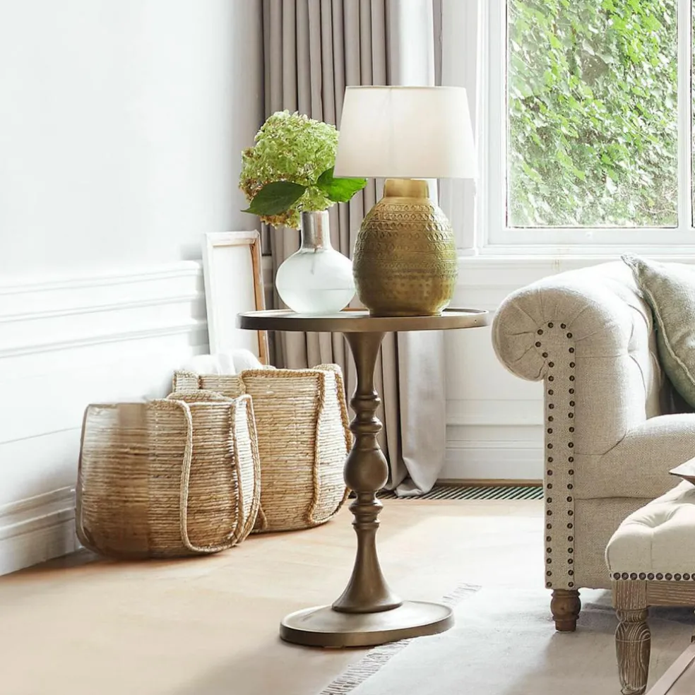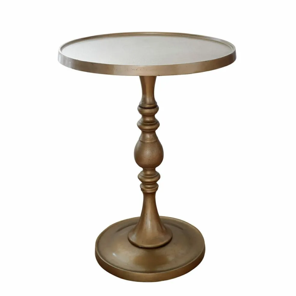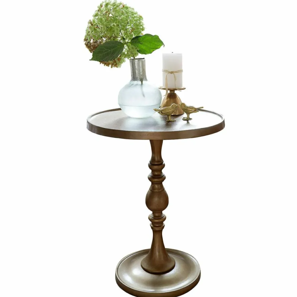 Ce guéridon est bien plus qu’un meuble pratique , il apportera une belle élégance toute particulière à chaque pièce. Confectionné en fonte d’aluminium massive, il se distingue par sa conception solide qui s’accompagne en même temps d’une légèreté visuelle. La finition laiton vieilli prête à cette table un style chaleureux et accueillant et met parfaitement en valeur les fines structures de la surface. Sa forme harmonieuse, composée d’un grand plateau de table rond avec un bord rehaussé et d’un superbe pied, lui assure une esthétique équilibrée qui fera l’unanimité dans les pièces aussi bien modernes que classiques. Comme surface de rangement élégante près du canapé ou comme touche décorative dans l’entrée, cette table d’appoint est le choix parfait pour tous ceux qui attachent de l’importance au design et à la qualité.