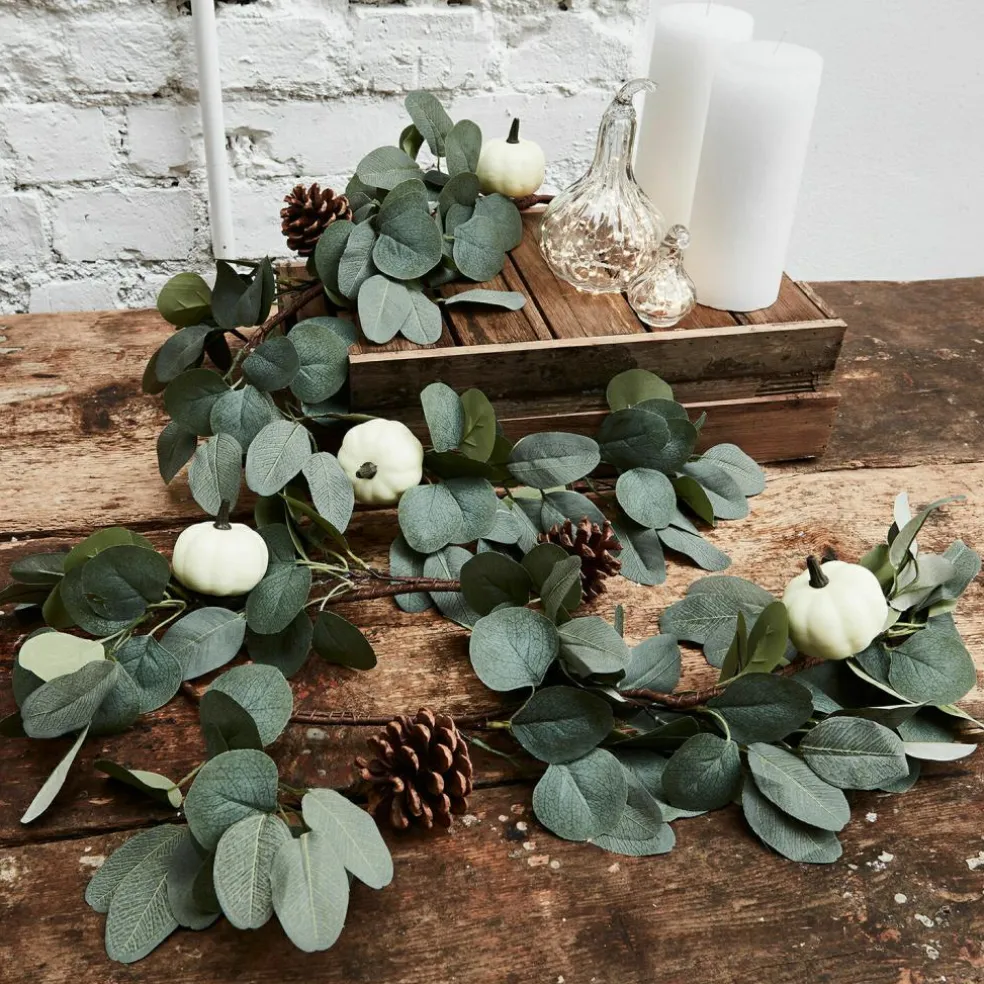 De véritables pommes de pin et de séduisantes citrouilles décoratives. Un superbe accessoire inspiré de la nature. Vous pourrez l’utiliser des années durant. Cette magnifique guirlande dotée de feuilles décoratives souples invite la nature à entrer chez vous. Elle capte à merveille le charme de l’automne et sera du plus bel effet sur une console de cheminée, autour d’une fenêtre ou de l’encadrement d’une porte : vous pourrez laisser libre cours à votre créativité ! Elle n’est pas seulement une décoration raffinée pour le style maison de campagne, mais elle rehaussera des années durant les intérieurs les plus divers. Car cette charmante guirlande aux détails minutieux ne se fanera jamais, pour être utilisée indéfiniment. Et la citrouille, symbole par excellence de l’automne, vous tiendra sous son charme.