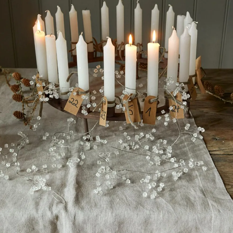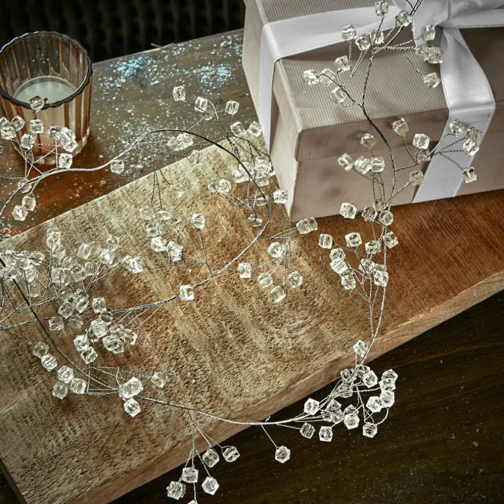 Inspirée d’une féérie hivernale : cette jolie guirlande tout en filigrane fait l’unanimité avec ses perles carrées en acrylique semblables à de fins cristaux de glace. Les perles sont enfilées sur un fil de fer souple pour que vous puissiez accrocher et moduler cette guirlande très chic à votre guise. Sur une fenêtre, le sapin de Noël ou encore le cadre de lit, elle viendra apporter une ravissante touche hivernale. Cet élégant modèle s’harmonise avec tous les styles d’intérieur et embellira la saison froide. Et pourquoi pas l’utiliser pour décorer aussi votre couronne de l’Avent : laissez libre cours à votre imagination ! Bien entendu, le charme de cette guirlande agit aussi bien en hiver que tout le reste de l’année.