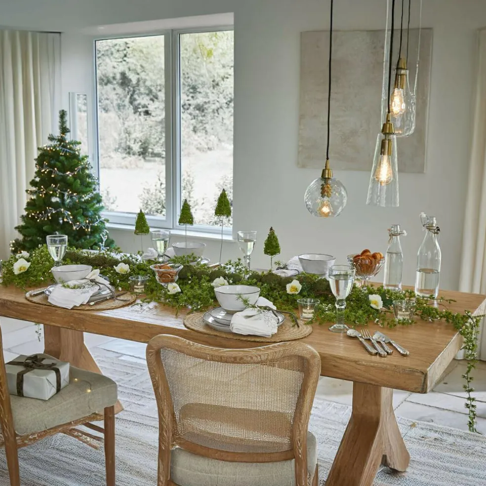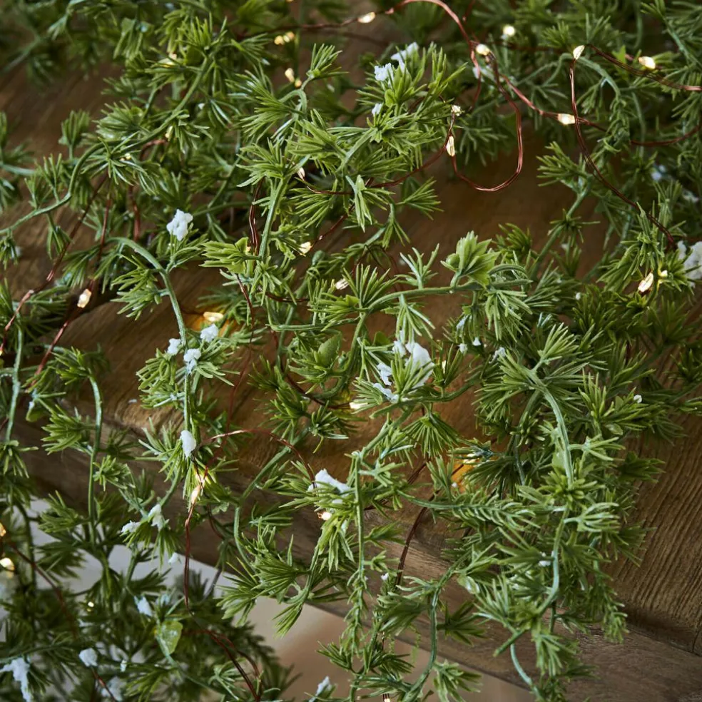 Tel un bout de forêt enneigée qui s’éveille à la vie : la délicate guirlande LED séduit par ses branches détaillées en forme d’aiguilles d’un vert sapin intense, recouvertes d’un doux soupçon de neige blanche. Entre les deux, 180 LED blanc chaud scintillent comme des petits points de lumière à l’aube pour une ambiance romantique et pleine de magie. Que ce soit sur une commode, un rebord de fenêtre ou sur votre table de fête, cette composition apporte une douce sensation de nature lumineuse dans vos quatre murs et donne une profondeur toute particulière à votre décoration de Noël.