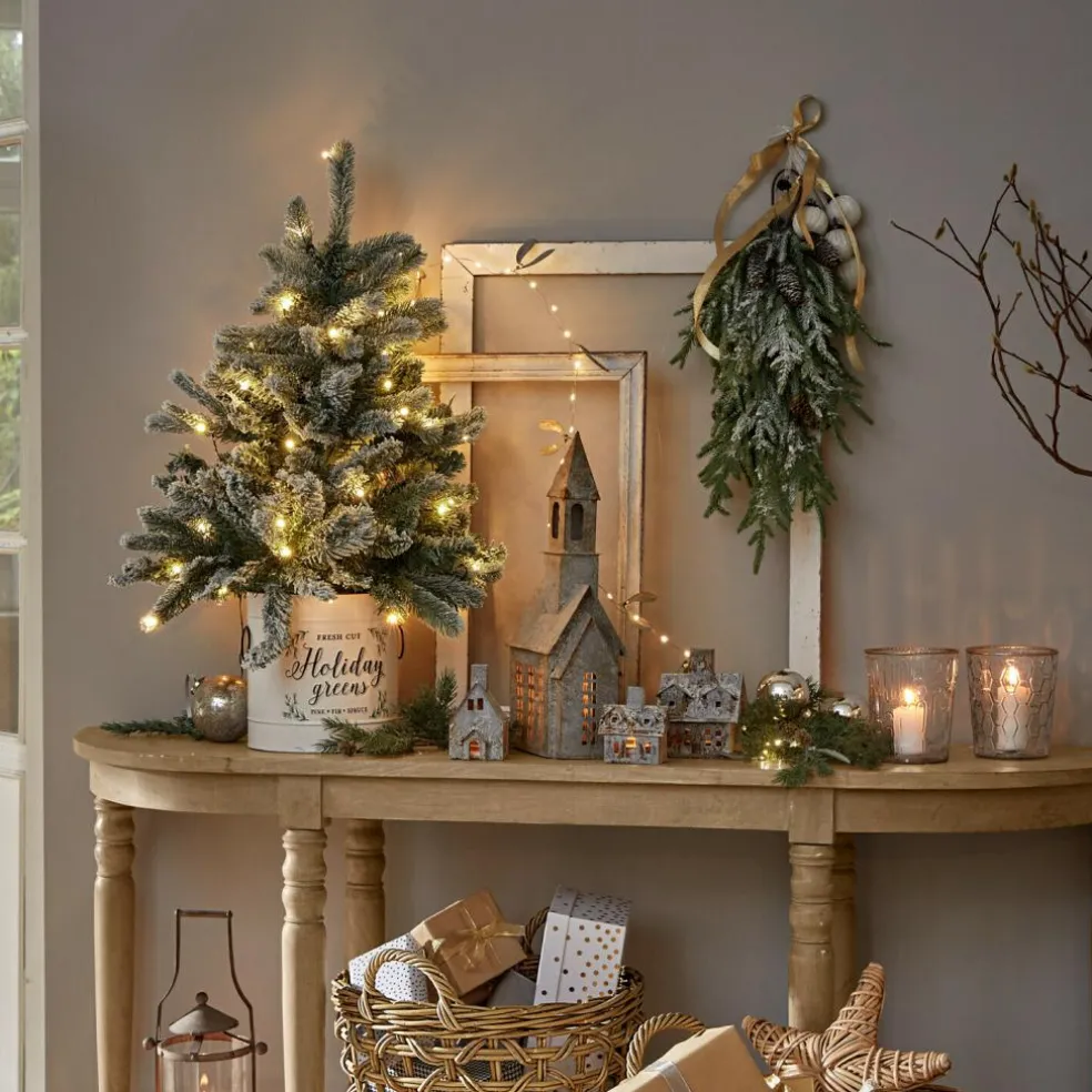 Une touche de magie hivernale pour votre intérieur: cette guirlande lumineuse joliment conçue reprend la forme traditionnelle du gui, mais au lieu des habituelles feuilles délicates, vous trouverez des éléments aux formes minimalistes en fer, combinés avec de petites baies blanches. Les LED de couleur blanc chaud contribuent à un magnifique contraste de métal et de lumière, au rendu à la fois moderne et festif. Que ce soit comme accessoire charmant au-dessus d’une porte, sur le rebord de la fenêtre ou le long de la cheminée, la guirlande lumineuse apporte la magie des douces soirées d’hiver dans chaque pièce. Particulièrement belle lorsqu’elle est associée à des matériaux naturels ou mise en scène dans un style industriel.
