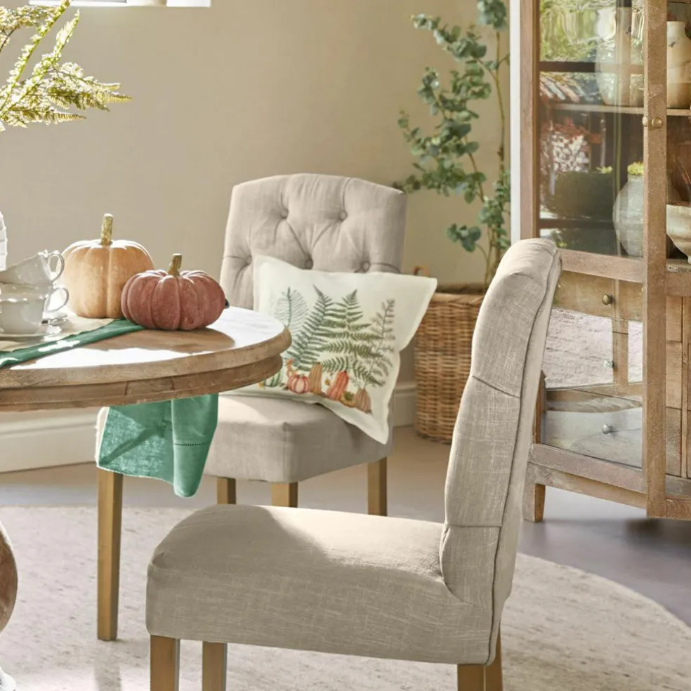 Lorsqu’à l’extérieur les feuilles des plantes se colorent et que la nature se pare d’un ton doré chaud et d’un vert mousse délicat, cette housse de coussin apporte exactement cette sensation à l’intérieur. Sur une fine toile en pur lin, de belles fougères brodées richement détaillées et de petites citrouilles stylisées se déploient dans une palette de couleurs rouge rouille, sauge, moutarde et crème. Les motifs délicats, vivants et pourtant discrets font penser à des aquarelles. Le matériau naturel confère à l’ensemble une texture merveilleusement douce au caractère légèrement rustique. Que ce soit comme décoration saisonnière ou comme accessoire pour toute l’année, cette housse de coussin à la broderie artistique apporte une légèreté automnale sur chaque canapé.