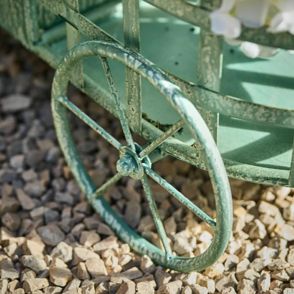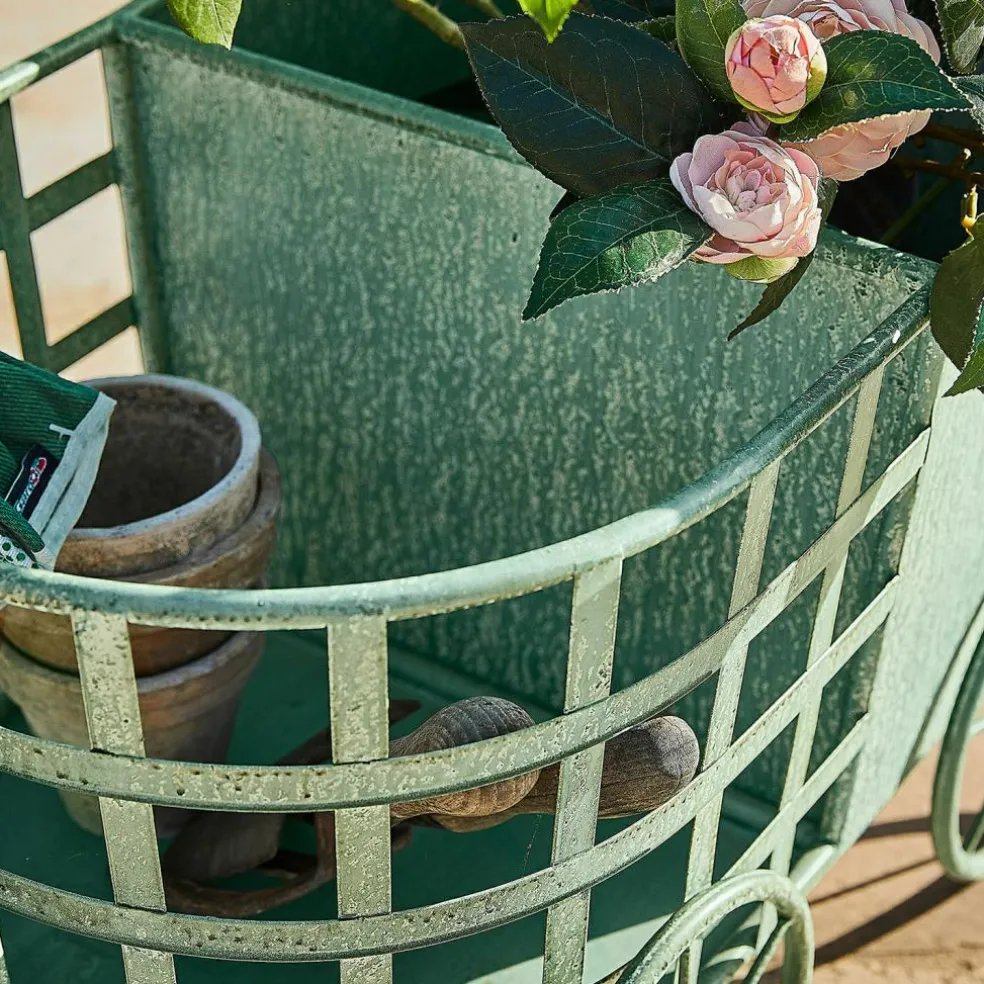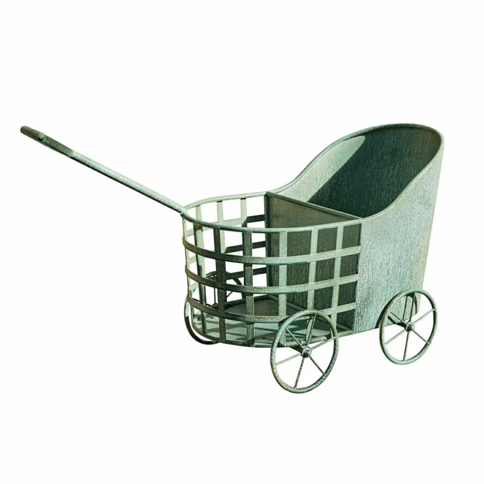 Un accessoire charmant pour les amateurs de plantes qui ont le sens de l’esthétique : cette jardinière en forme de chariot nostalgique allie détails décoratifs et fonctionnalité pratique. La solide structure en fer est rehaussée d’une finition vert antique et d’une fine patine qui lui confère le caractère d’une trouvaille de jardin amoureusement vieillie. Les entretoises du panier mettent en scène de manière impressionnante les fleurs et les plantes vertes, tandis que la longue poignée rétractable et les roues fixes complètent l’ensemble. Que ce soit pour attirer l’attention dans l’entrée, sur la terrasse ou au jardin, cette jardinière apporte une belle touche vintage.