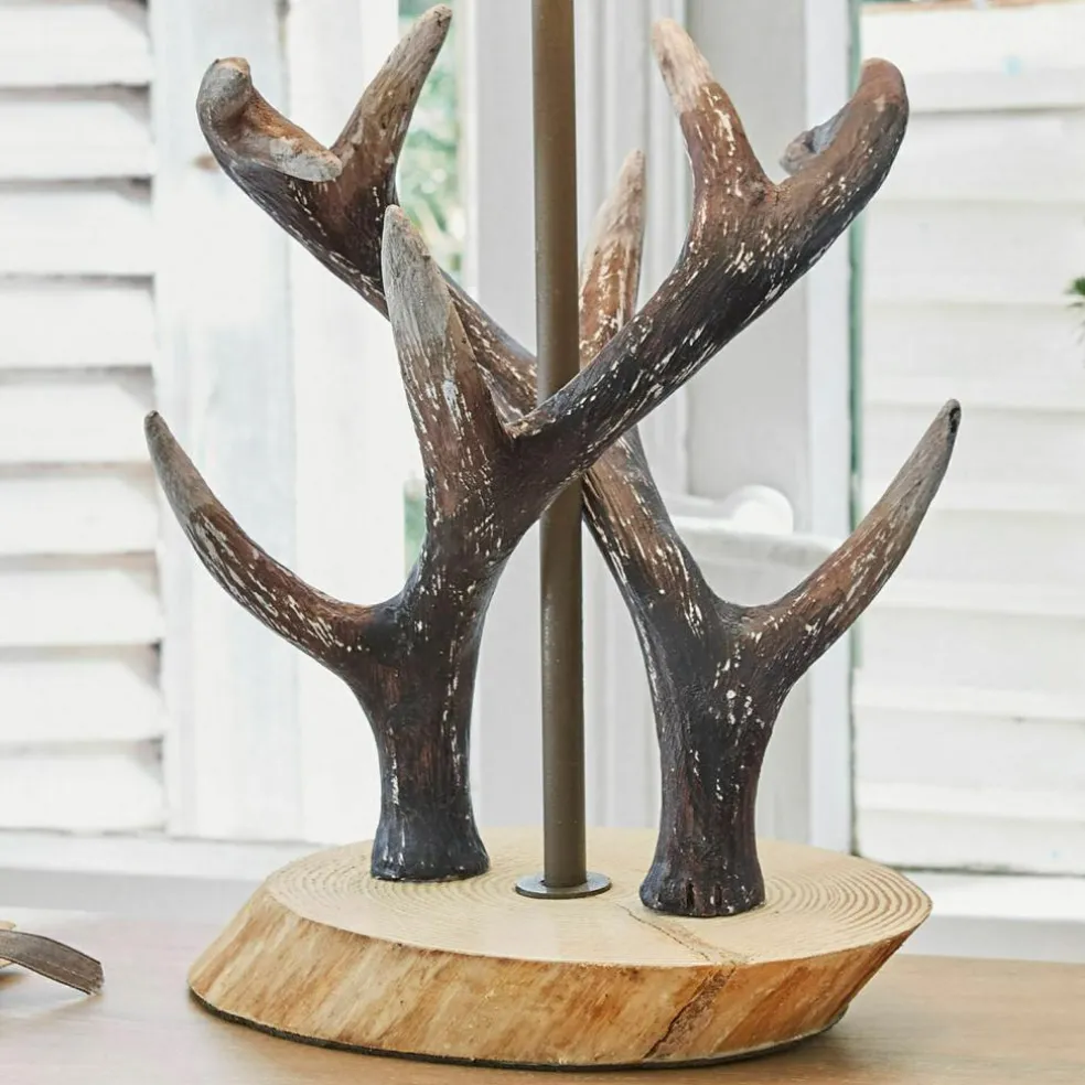 Bienvenue au chalet! Cette lampe originale donnera à votre intérieur le caractère très chaleureux d’une cabane en bois intimiste. Une jolie tête de cerf orne l’abat-jour en feutrine, tandis que le pied rappelle d’authentiques ramures. Une tige de fer est également ajoutée pour assurer un maintien parfait. À l’extrémité se trouve un pied en bois chic, pour apporter de la solidité et beaucoup d’élégance. Son style résolument naturel et sa touche rustique vont magnifiquement bien avec le style champêtre et chalet. Dans le salon ou à côté du lit, la lampe rendra votre intérieur particulièrement agréable. La regarder vous rappellera la campagne et les forêts luxuriantes, les montagnes enneigées ou un havre de paix en pleine nature. Profitez de votre temps libre avec un éclairage agréable qui apportera une touche attrayante à votre décoration. La lampe est équipée d’un interrupteur à bascule.