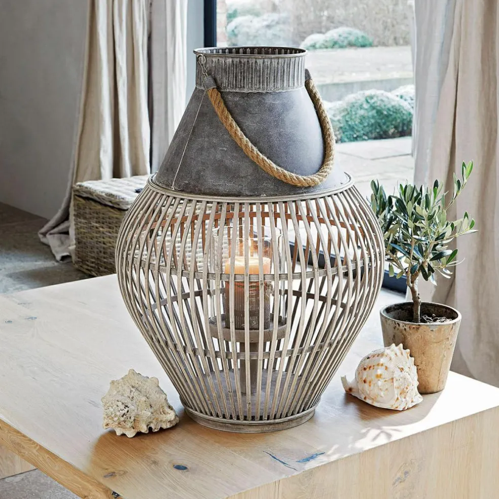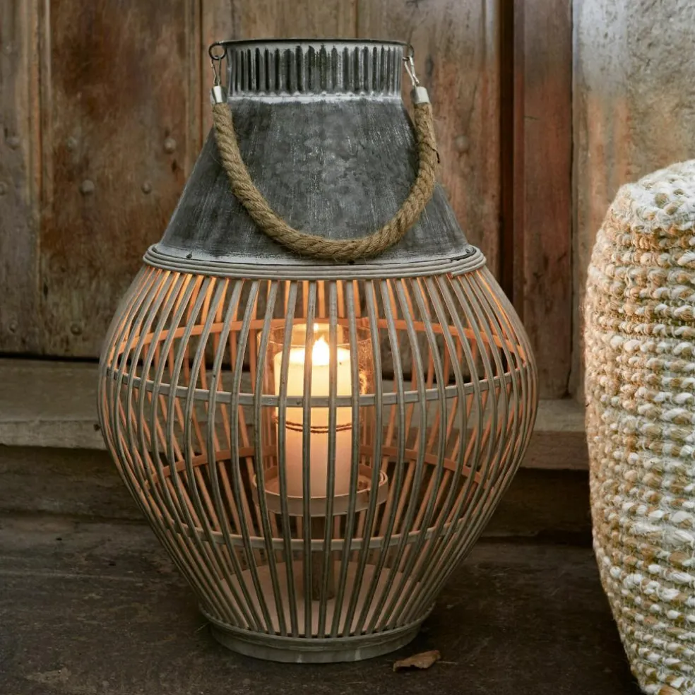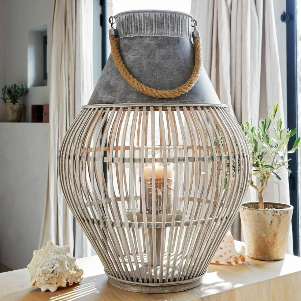 Le chic bohème pour un intérieur accueillant. Chaque modèle est une pièce artisanale unique. À poser ou à suspendre. Cette lanterne est à la fois un superbe point de mire et un éclairage élégant de style bohème chic. Cet objet est particulièrement charmant, puisqu’il associe une structure en bambou en bas avec un élément en zinc sur le dessus L’empiècement en verre à l’intérieur assure la stabilité de la bougie. Ce bel accessoire est complété par une superbe anse en corde qu’il est possible de retirer. Cette lanterne convient particulièrement bien dans une atmosphère bohème ou ethnique, sur la terrasse comme à l’intérieur.