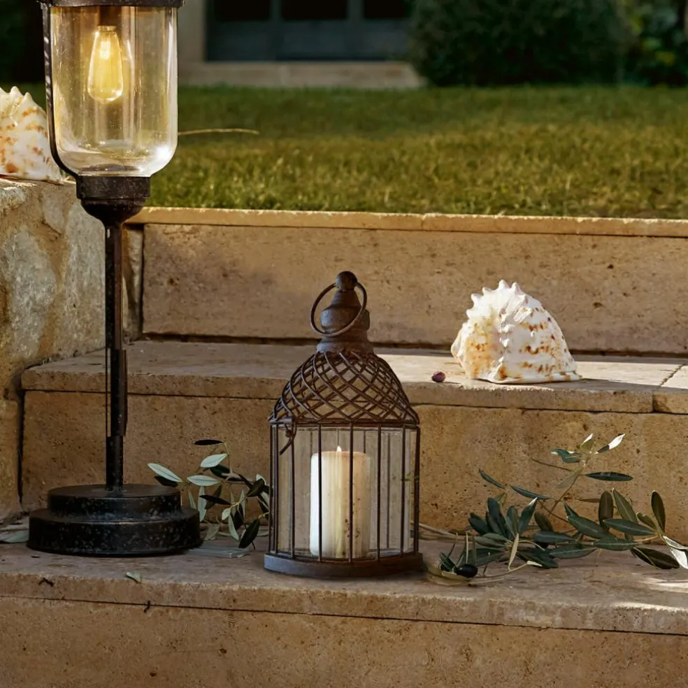 Le design de cette charmante lanterne est empreint d’une touche orientale et ses différentes influences la rendent très polyvalente. Elle s’intègre parfaitement dans les intérieurs classiques et élégants et apporte une touche originale dans les intérieurs contemporains. Elle est fabriquée en fer et présente une très belle patine qui s’embellit au fil du temps. De plus, elle est vitrée pour protéger les bougies du vent. La lanterne est donc également idéale pour le balcon, la terrasse et le jardin. La couronne s’ouvre et grâce à un anneau, ce petit trésor peut également être suspendu.