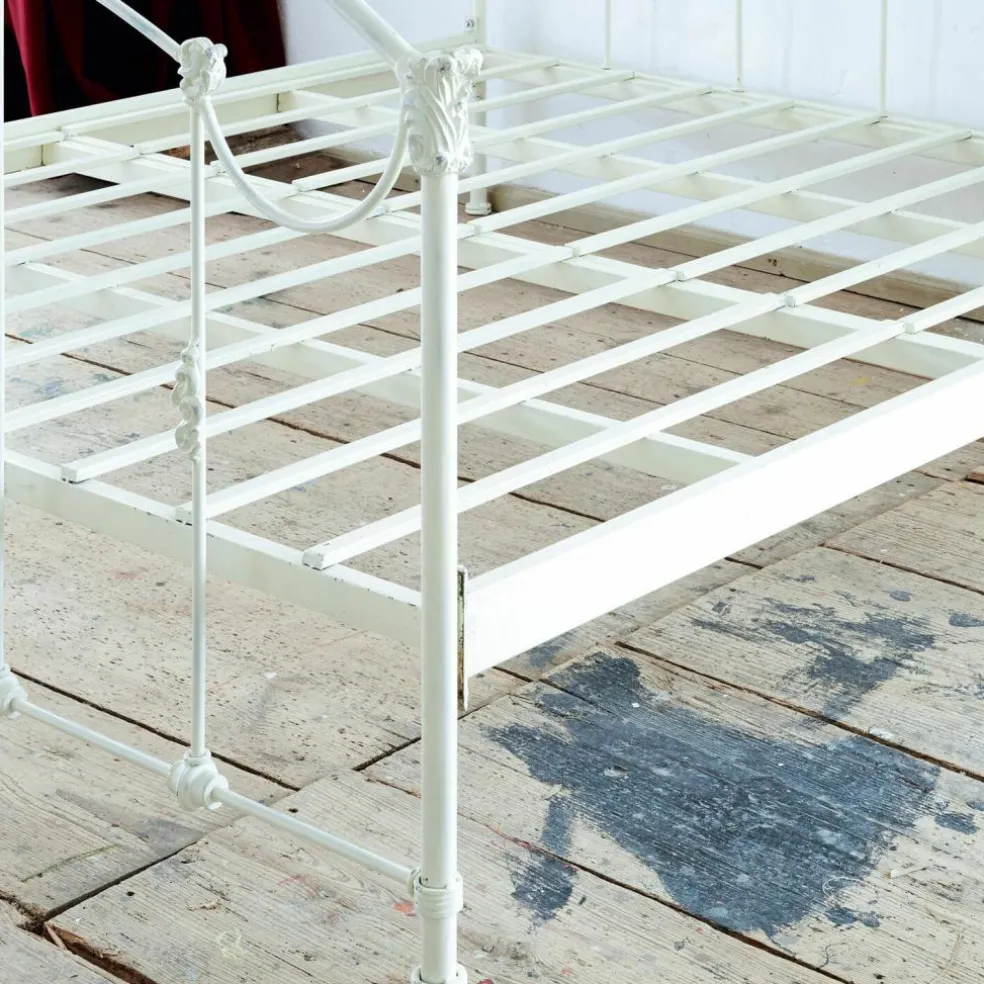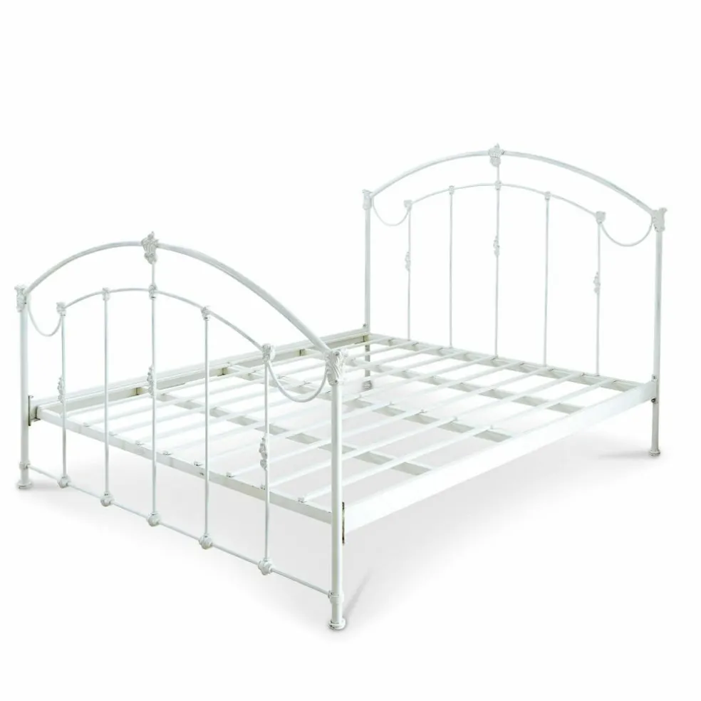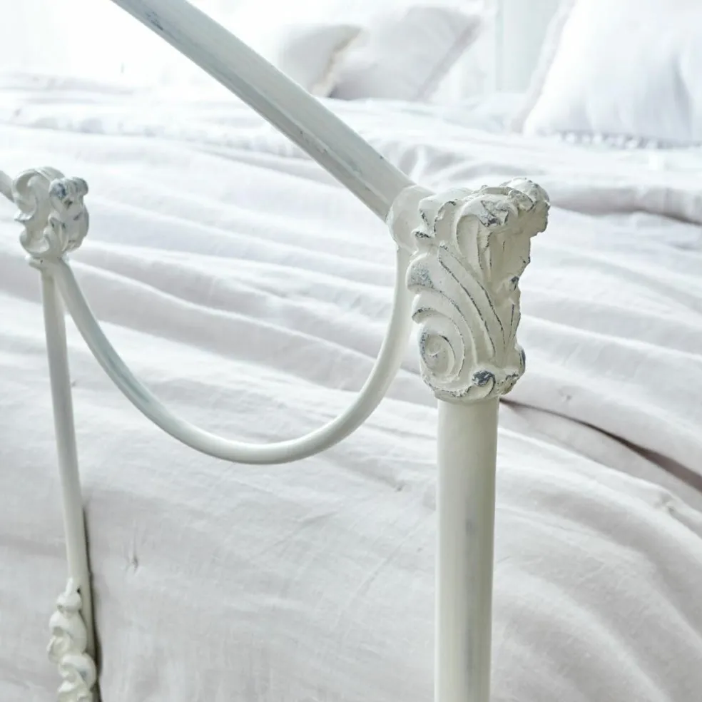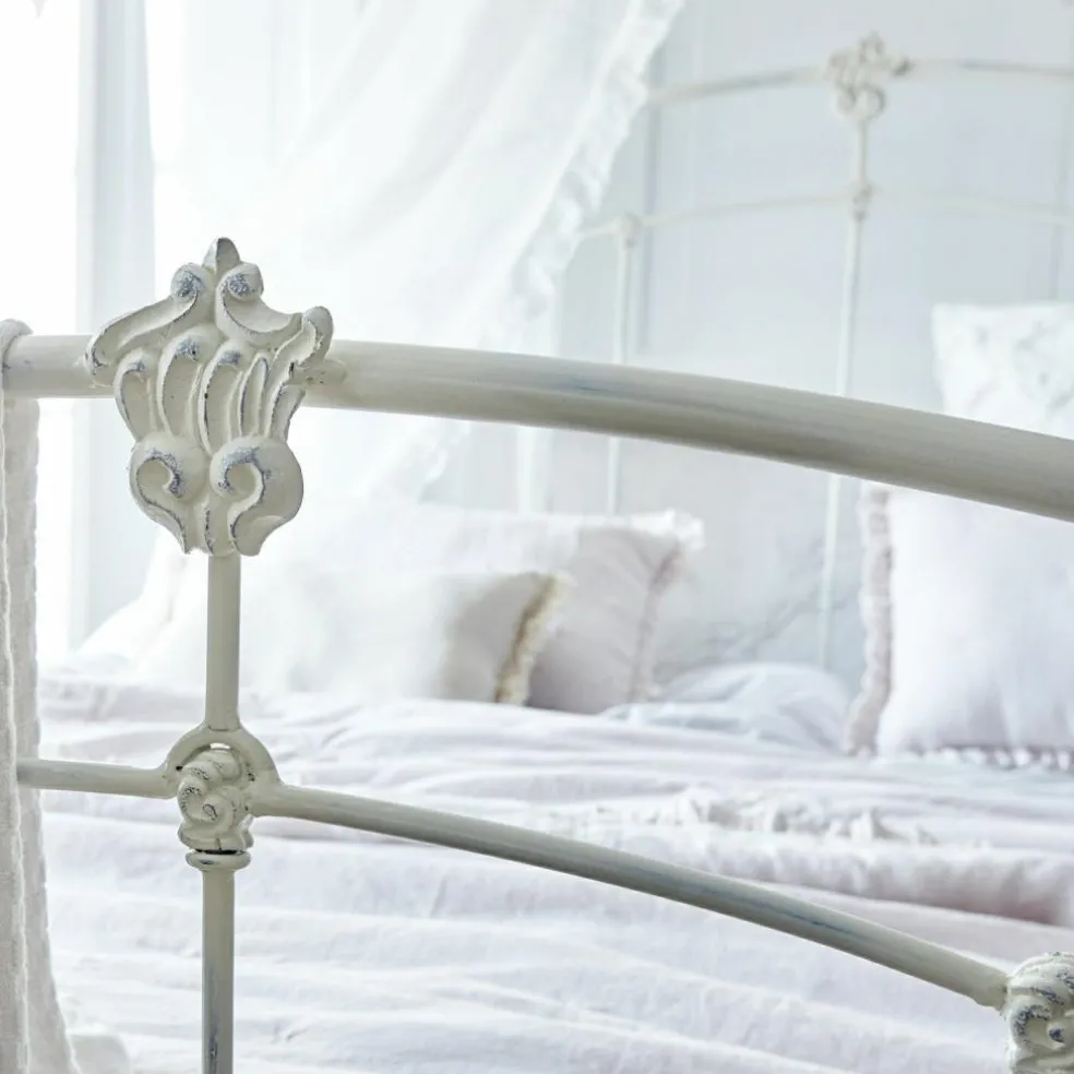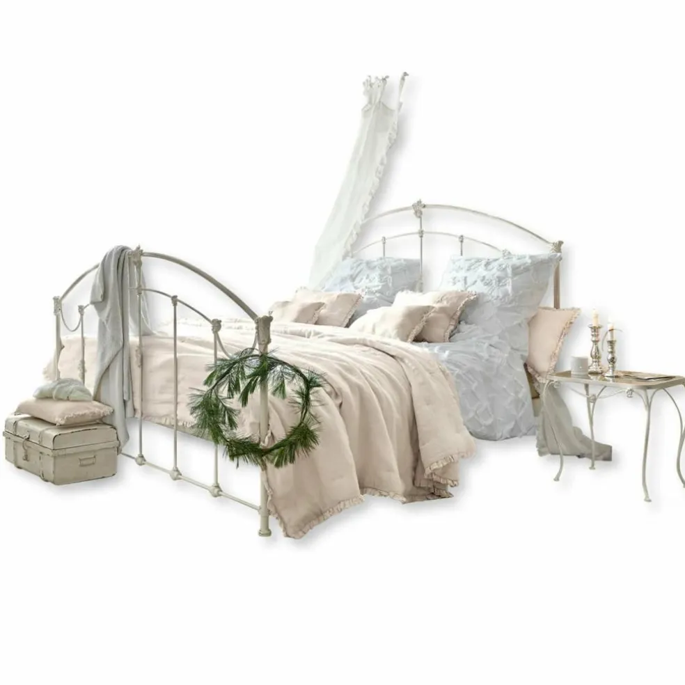Romantisme pur et grand confort. En métal joliment galbé. Finition vieillie et ornements élégants. Les amateurs de shabby chic ont trouvé le lit de leurs rêves ! Avec son superbe look vintage, on le croirait tout droit venu d’une autre époque. Tout le lit est en métal solide, même les deux sommiers. Ces derniers sont amovibles et résistent à de grandes charges. Vous y dormirez comme sur un nuage tout en profitant de son irrésistible charme qui ne manquera pas d’irradier votre chambre. Ce lit aussi ravissant que luxueux convient aussi bien pour une que pour deux personnes. Soulignez encore davantage le look shabby de ce superbe modèle en l’associant à un linge de lit délicat, peut-être orné de ruchés ou de broderies. Ce beau lit de grande qualité est particulièrement durable dans le temps.