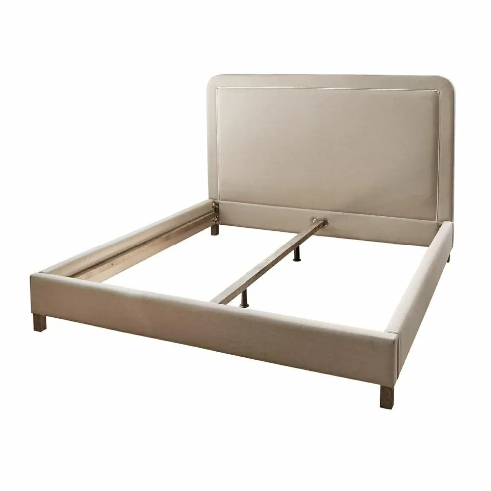 Ce lit est un havre de paix. La tête de lit haute et rembourrée se fond délicatement dans la pièce grâce à ses bords arrondis, tandis que le tissu en lin dégage une chaleur discrète. La couture finement travaillée qui entoure la tête de lit souligne la forme épurée avec une touche de raffinement. Les parties latérales sont également entièrement recouvertes et rembourrées, ce qui confère au lit un caractère achevé, quel que soit l’angle sous lequel on le regarde. Les couleurs naturelles, la surface apaisante et les détails bien pensés font de ce lit un havre de paix qui enrichit la chambre à coucher.