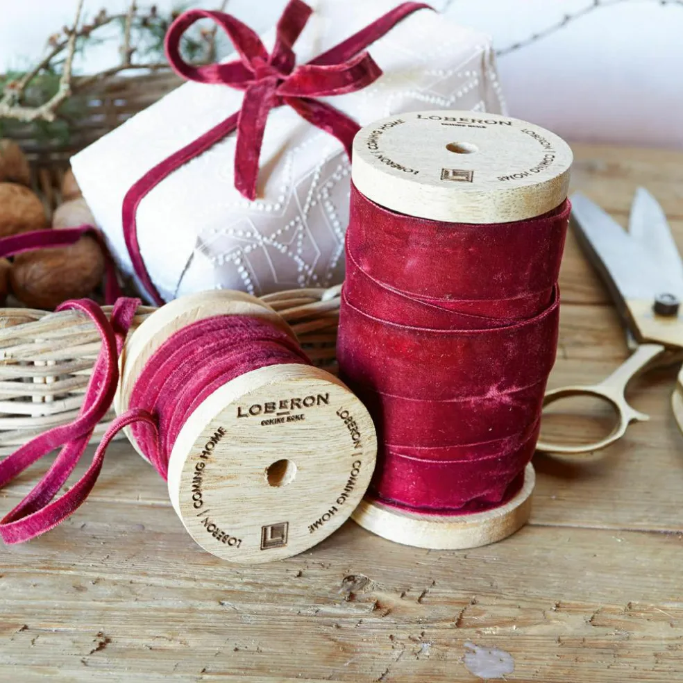 De vraies merveilles pour vos emballages cadeaux et vos décos ! Style vintage rehaussé de la marque LOBERON. Deux largeurs, longueur de chaque bobine 10 m. Bobines en bois de manguier massif et rubans en velours chatoyant en deux largeurs : rien de plus beaux que cet ensemble de rubans en velours ! Le petit logo LOBERON sur la bobine souligne le magnifique style vintage de ces accessoires. Ces rubans rehausseront vos cadeaux et décorations de la plus belle des manières tout en étant magnifiques à regarder. Laissez libre cours à votre créativité !