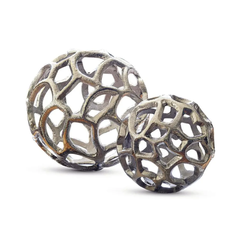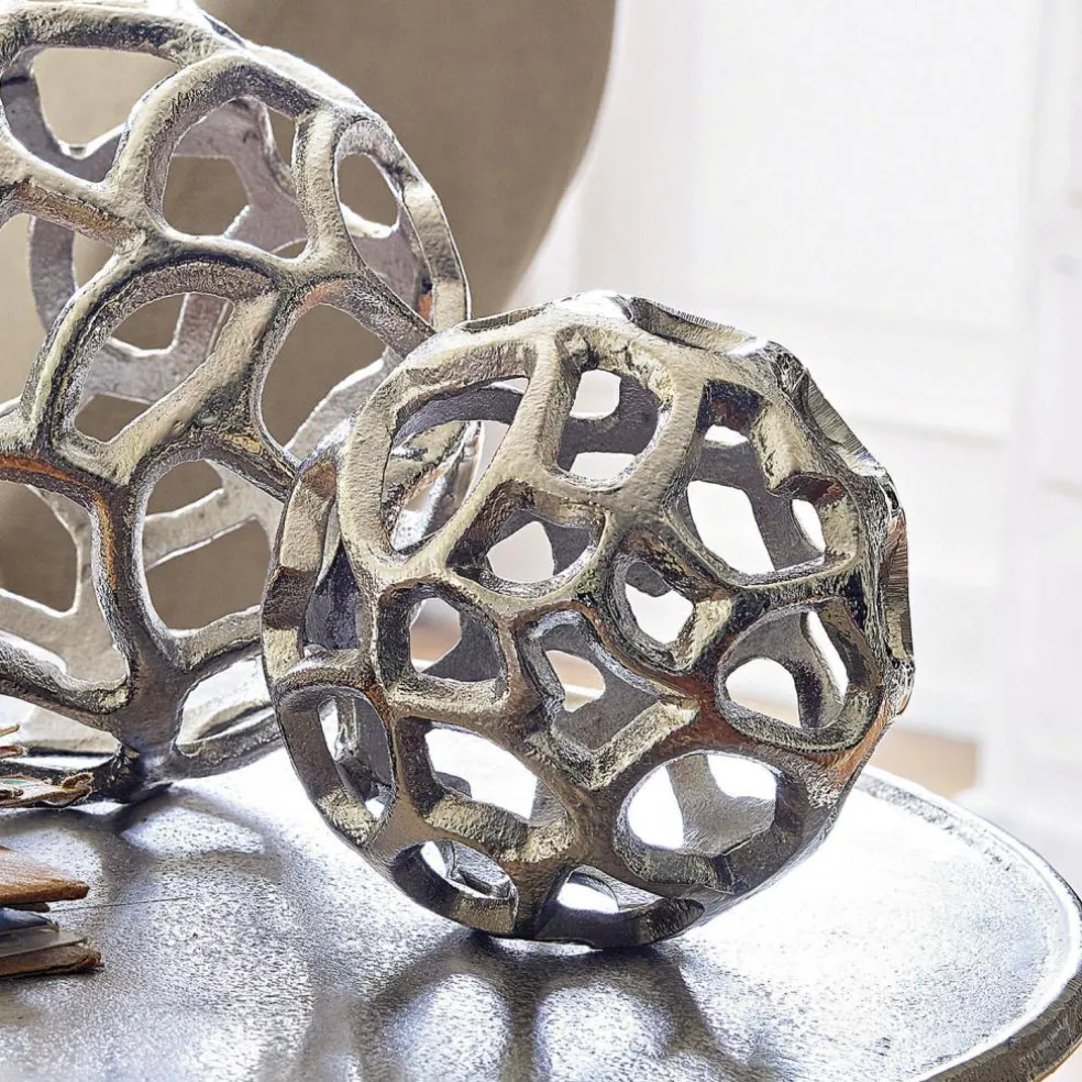 Travail d’art en aluminium coulé. Un joli duo en deux tailles. Nombreuses possibilités de décoration. Ces superbes boules au style intemporel sont parfaites pour décorer une table, un buffet ou un plateau. Posées seules sur un meuble, elles feront autant d’effet que si vous disposez des fleurs, des branches, des cristaux ou d’autres beaux objets autour d’elles. Leur aspect serein et harmonieux rehaussera n’importe quel intérieur. Admirez tout au long de l’année ces objets raffinés ! Au gré de votre fantaisie, vous pourrez aussi fixer un lien aux boules pour les suspendre.
