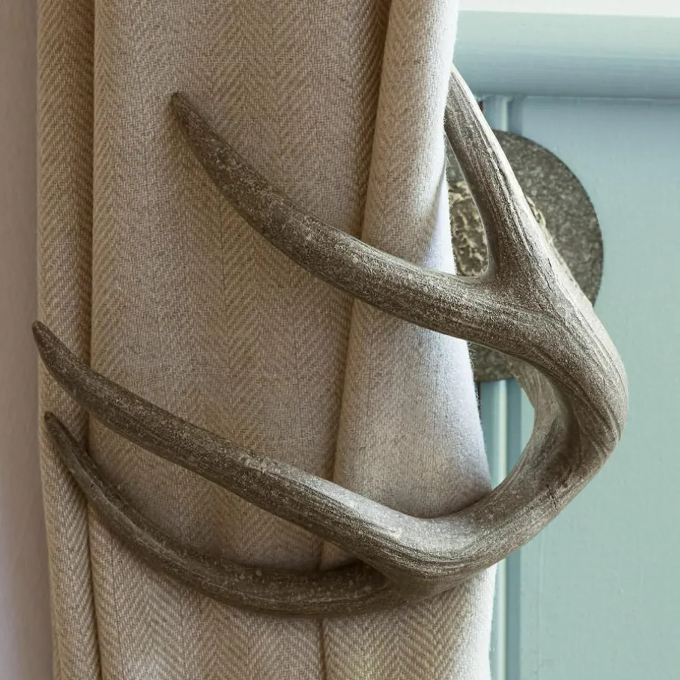 Qui a dit que la fonctionnalité ne pouvait pas être aussi impressionnante ? Ce lot de 2 embrasses en forme de bois de cerf apporte la magie d’un pavillon de chasse confortable directement à votre fenêtre. La forme organique courbe, qui rappelle les branches très fines d’un bois de cerf, a été finement structurée : on pourrait presque croire qu’il s’agit d’un véritable objet trouvé dans la forêt. La couleur rustique en marron naturel souligne l’impression d’authenticité et s’harmonise à merveille avec des rideaux en lin clair ou des velours lourds. Idéal pour ceux qui souhaitent apporter à leur intérieur une atmosphère chaleureuse d’inspiration rurale, avec un clin d’œil et beaucoup de style.