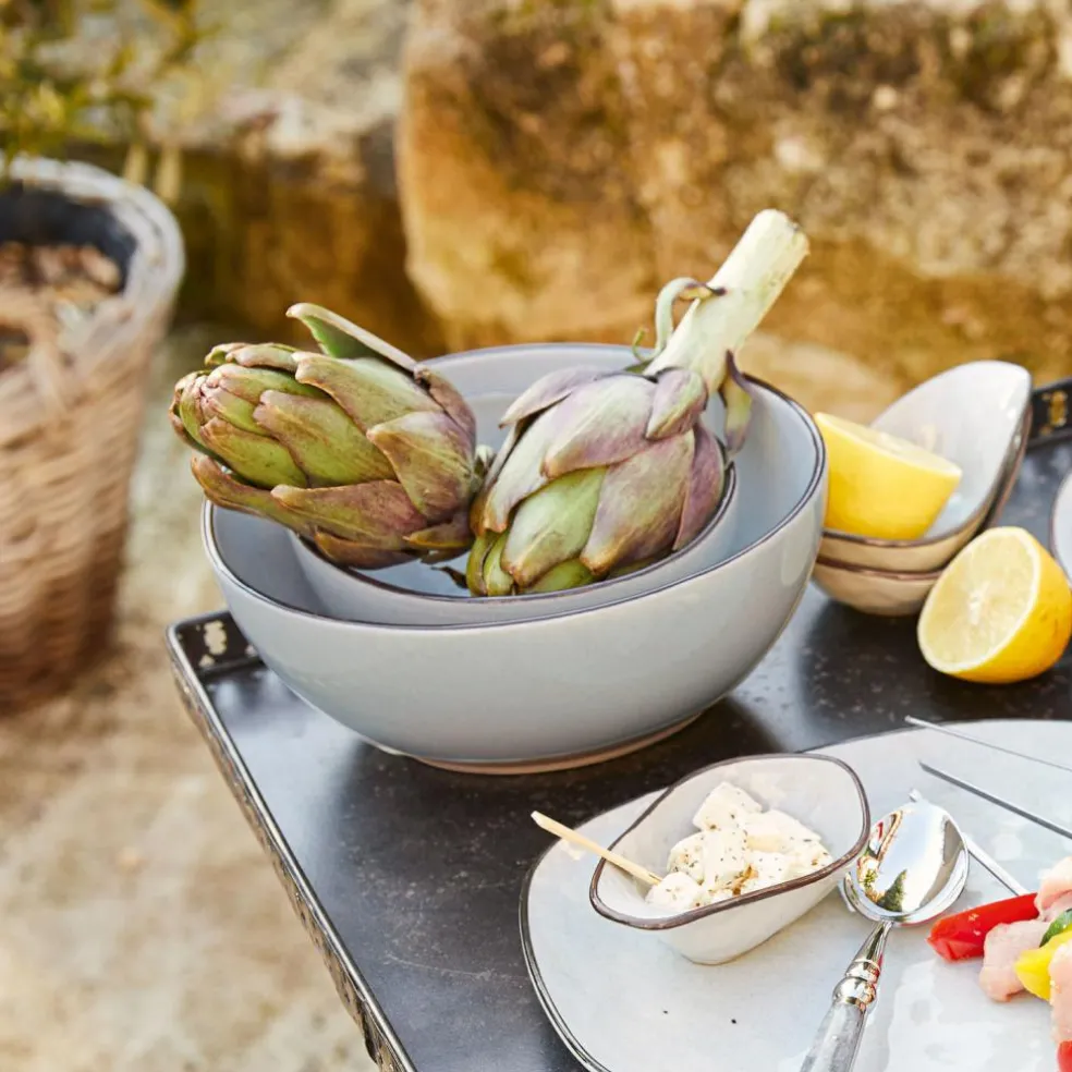Poterie méridionale. Grès de grande qualité. Le bord au coloris contrastant confère à chaque pièce un aspect raffiné. Chacun de ces saladiers en grès de style méridional est réalisé avec une haute exigence de qualité. Ces poteries traditionnelles d’une grande solidité sont faciles à nettoyer. La qualité du grès à usage alimentaire correspond à celle prisée par les meilleurs restaurants du monde entier. La belle brillance de cette matière haut de gamme donnera un air de fête à chaque repas.