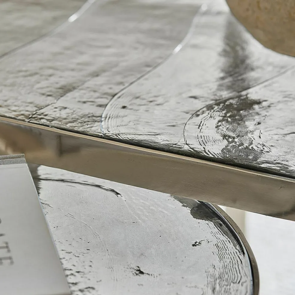 Ajoutez une touche de sophistication intemporelle à votre salon avec cet ensemble de tables basses d’exception. L’aspect froid et épuré des plateaux en verre, associé aux cadres métalliques, crée une ambiance raffinée, à la fois moderne et classique. Le point fort : grâce à ses formes bien pensées, la table ronde peut être glissée sous la table carrée pour vous offrir une solution élégante pour plus d’espace et de flexibilité. La structure fine du verre ornemental capte la lumière et crée des reflets fascinants. En solo ou en duo, cet ensemble apporte de l’éclat à votre intérieur.