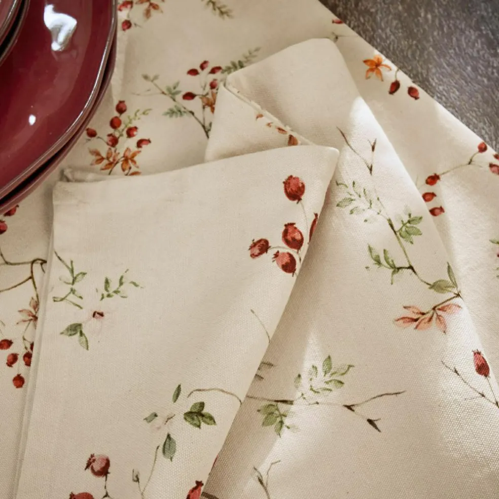 Telle une promenade dans les champs à la fin de l’été, ce lot de 2 torchons en pur coton apporte un peu de nature dans votre cuisine avec son imprimé d’églantines joliment conçu. Les délicates branches avec de petits fruits ronds semblent peintes à l’aquarelle et se répendent de manière aérienne sur le tissu crème, comme si quelqu’un les avait appliquées avec un fin pinceau. Le coton tissé est agréable au toucher, résistant et absorbant: parfait pour un usage quotidien. Ces torchons sont également une décoration élégante sur des crochets ou sur une étagère ouverte. Un petit détail qui respire la joie au quotidien, non seulement beau, mais aussi utile.